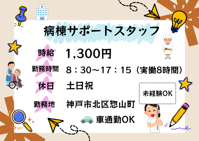 [神戸市北区-院内サポート]◎未経験スタートOK◎平日日勤のみ◎