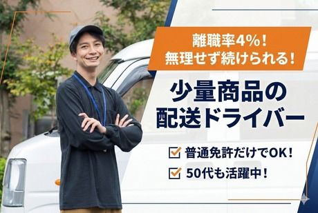 資格 【必須】普通自動車運転免許(AT限定もOK) ■学歴・資格・年齢不問! ■中高年・シニア世代活躍中! ■ブランク・UIターンも大歓迎! < こんな方歓迎! > ■ドライバー業務に興味がある方 ■軽自動車の運転に慣れている方 ■一人で落ち着いて作業するのが好きな方 ■プライベートと両立できる働き方を求めている方 ■将来、中型・大型・けん引免許へ挑戦したい方 < 職場環境 > 近距離配送が中心なので、 長時間運転に不安がある方や、 初めて配送に挑戦する方でも始めやすいお仕事です。 食品や雑貨など軽めの荷物が多く、 ナビアプリによるルート案内もあるため、 経験のない方でもスムーズに業務を覚えられます! 運転好き&黙々と働きたいタイプの方にもぴったり◎ 普通免許からスタートし、 中型や大型などの資格取得に挑戦できる環境です!