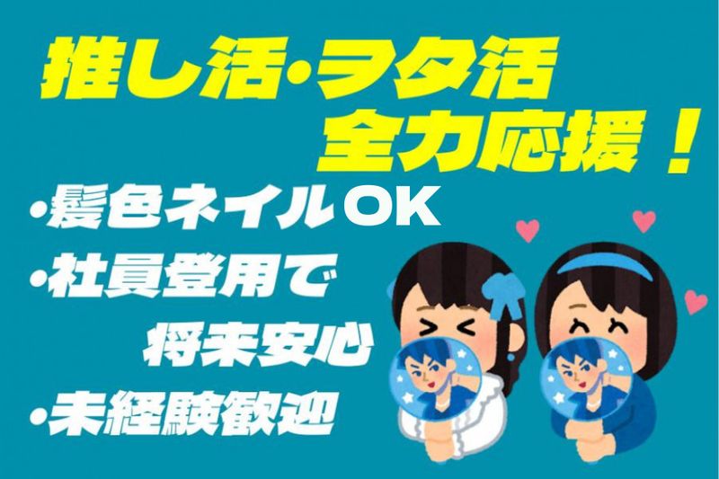 【アピールポイント】 パチンコ・スロットホールでの接客や受付、景品交換などをお願いします。 パチンコに関する知識やスキルは一切不要!未経験の方も活躍中の職場です✨ ⭐推し活・オタク活動全力応援!⭐ アイドル、バンド、アニメ、電車などあなたの推し活を応援できる職場環境です! 今は全力でプライベートを楽しみたい!でも将来の不安は解消しておきたい!という欲張りな方はぜひご応募くださいね! ✅シフト制だから希望休OK 固定シフト制や土日祝休みだと、イベントやコンサートへの参戦が難しくありませんか? 当店は、2週間に1度のシフト提出なので休みに融通が利き、さらに早番勤務であれば、早めに退勤してそのまま移動時間に充てることも可能です。 ✅推し活・オタク活動資金をしっかり稼げる! 土日祝勤務、22時以降の勤務は時給がUPするので、効率よく稼ぐことができます。 ✅おしゃれも楽しめます 明るい髪色(JHCAレベルスケール15まで)やネイル、カラコンもOK!詳しくは原稿下部をご確認ください! ✅正社員登用あり! オーギヤなら働きやすい!と思って頂けた方には、正社員登用制度もございます。 今まで学んだ接客スキルなどを活かして正社員になれるので、キャリアアップにも繋げることができ、将来的にも安心です。 さらに、正社員になると「光熱費・駐車場代込みで1万円のきれいな社宅」など、福利厚生が充実していることも自慢です✨ ⭐具体的なお仕事内容⭐ ・カウンターでの接客 ・景品交換 ・ホールの巡回 ・お客様のサポート ・簡単な清掃 など 店内での受付・ホール業務を行います。 重たい玉運びはほとんどありません! ⭐職場見学後の応募でOKです⭐ 「パチンコ屋さんに行ったことがない」という方へ! 「興味は出てきたけど、いきなり応募は…」という方も職場見学ができるので安心♪ 実際に店舗で働くスタッフさんの声や動きを見ていただくので「これならできそう」と応募いただける方が多いんです。 「入ってみたら条件も良く、働きやすくて意外と長く続いてます!」って方が多数!まずはぜひお気軽にご相談ください。