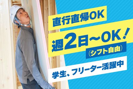 仕事内容 建築現場で内装資材の搬出入・その他軽作業をお任せします。 当社は戸建てメインなので、1日に多くの現場を回れて 稼ぎやすいのが特徴です(お支払いは1現場ごと に発生) 未経験の方でも丁寧に教えますので、安心して ご応募ください!頑張りがそのまま収入として 返ってくるので、やりがいあること間違いなし◎ 作業現場はご自宅の場所を考慮の上決定します。 経験問わず20代~40代の幅広い方々に活躍いただいております! わからないことがあればスグに質問OK。気さくな先輩がどんなに小さな質問でも答えてくれますよ♪ 体力に自信がないという方は1現場からでも勤務OKです。未経験者は研修もあるので焦らなくてOK! 引越し・鳶・解体・建設関連業の経験をお持ちの方は即戦力として活躍いただけます。 無理なく、あなたのペースで働いていただけます! ガッツリ稼ぎたい方は週6日以上も可能! 慣れてきたら1日3~4件回ることも! お仕事は週2日~OKなので、忙しい方は 午前・午後のみのスキマ時間で 稼いじゃいましょう☆ 年中通してあなたが希望したシフトを 埋められるだけの現場をもっているのが 当社の強みです。 現場には直行直帰でOKなので、 プライベートとの両立も◎