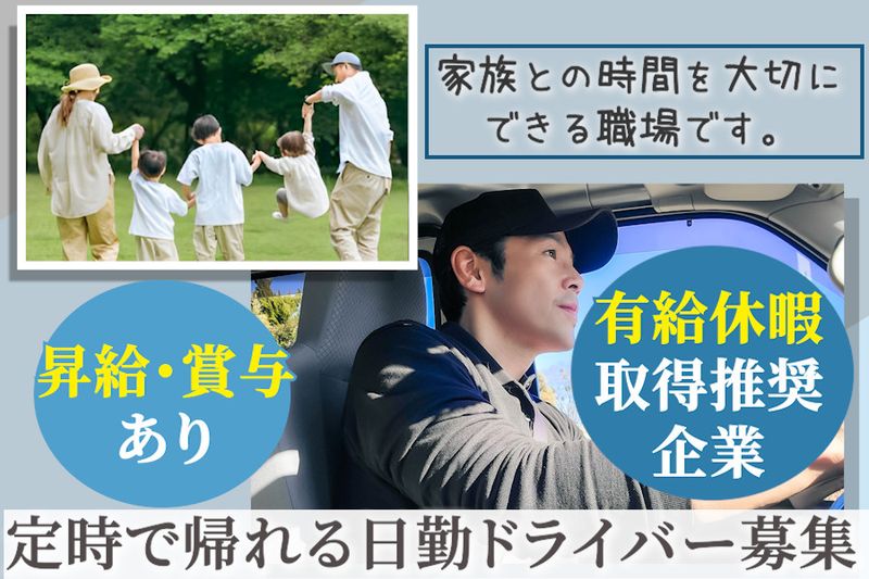 ・定時で帰れる日勤ドライバー!・成長に応じて昇給&年1回の賞与・計画的にリフレッシュ!有給取得支援企業