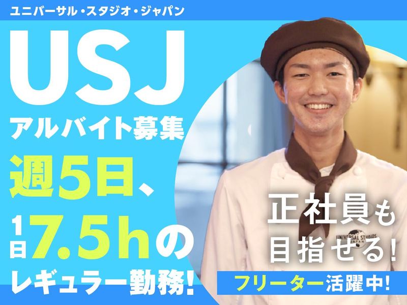 仕事内容 ⭐ー USJ公式アルバイト募集 ー⭐ ワクワクドキドキをお届けする ユニバーサル ・ スタジオ・ジャパンで 「レストランの調理補助スタッフ」を大募集! ✅カフェやレストランでのキッチンのお仕事! 季節限定やオリジナルメニューも沢山! 1つずつ丁寧な調理や盛り付けができる方を 歓迎します!丁寧な研修があるので 未経験、調理が初めての方もご安心ください◎ ✅週5日レギュラー勤務 フルタイムで働きたい、 社会保険に加入したい、 正社員を目指したい方も活躍中! ✅クルー限定の特典やイベント多数♪ 無料招待券や割引チケットの配布 クルー限定パークイベントもあり◎ 他にも、従業員食堂の割引、 勤務時間に応じたマイレージボーナスなど 長く働くほどお得な特典がたくさん!