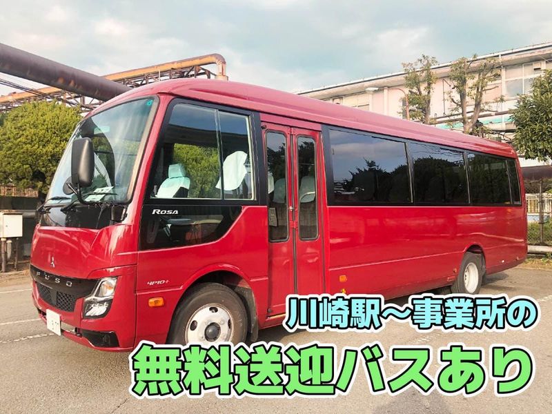 勤務地 ■各線「川崎駅」より、当社専用の無料送迎バス有。 <行き>毎朝7:05に「川崎駅」東口付近を出発し事業所へ。 <帰り>17:15に事業所を出発し「川崎駅」まで向かいます。