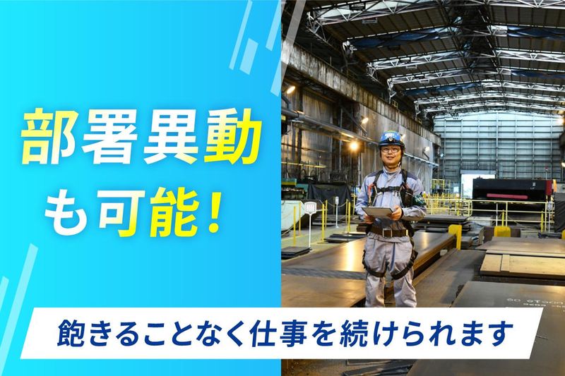仕事内容 ◆ 未経験歓迎!手に職をつけて活躍! ◆ 充実研修でイチからスキルを習得可 ◆ <20以上>の資格取得支援あり ◆ 年120日休み!週休2日&年末年始休暇 ◆ 仕事と私生活を良いバランスで両立可 …………………………………………… 仕事内容 …………………………………………… 家電や電気製品、車、缶などに使われる 「鋼鉄」を製造する製鉄所にて、 設備・機械の整備や管理をお任せ。 具体的には、 ◆日常メンテナンス ◆改造工事 ◆定期補修工事 などを行っていただきます。 最初は残業が少ない部署からの スタートになるため、心身にゆとりを持ち 一つ一つの仕事を丁寧に学べますよ◎ また、勤務地は世界トップクラスの 生産規模を持つ大手鉄鋼メーカー 「JFEスチール」の東日本製鉄所千葉地区。 常駐しての作業となるため、 一つの現場で落ち着いて業務にあたれます。 ルーティン系の専門業務から、 日々変化する仕事へのチャレンジ、 長期に渡る大物工事施工まで様々です。 あなたにぴったりの仕事が見つかります。 ※部署は全部で6つあり、 部署異動も可能です << 入社後の流れ >> ▼1年目~ ✅お仕事 見習い期間として徐々にステップアップ ✅資格 特別教育(作業をする上で必要なもの)、 玉掛、アーク・ガス溶接など、 初歩的な資格・スキルを 習得していきましょう。 ▼3年目~ ✅お仕事 作業にもなれ、その日の作業を 先輩と一緒に組み立てたり危険な ポイントに対策をしたり幅が広がります。 率先した作業が増えやりがいがUP! ✅資格 足場・酸欠・特化物主任者、高所作業車 小型移動式クレーンなど 応用・上位資格の取得を目指します。 ▼5年目 ✅本格的にプロの道へ。 ・クレーン運転士 ・施工管理技士 など、 国家資格を含む 専門的な資格の取得を目指します。 …………………………………………… ゆとりのメリハリワーク …………………………………………… 創業より80年以上、信頼と実績を 積み上げてきた当社。 経営基盤が安定しており、 待遇や福利厚生にも力を入れています。 *土日祝休みの週休2日制 *年間休日120日 *有給取得率100% *残業少なめ と、ワークライフバランスを取りやすい 環境を整えました。 また、借り上げ社宅を <単身用><世帯用>共にご用意。 心機一転頑張りたいあなたを応援します♪ さらに、 *奨学金返済制度 *食事代補助 など、家計が助かる嬉しい制度もご用意。 おかげさまで定着率も良好です♪ …………………………………………… 一生モノのスキルを習得可! …………………………………………… 初歩~専門資格までを網羅した 20種類を超える資格の取得を支援! 業務の一環として取得できます! 取得にかかる費用は全額会社負担です。 スタッフからは、 「経験やスキルに合った資格が 設定されているから迷わない」 「一つひとつ積み上げていく感覚が ゲームのレベル上げみたい」と好評です♪ 奨励金や資格手当もご用意しています! スキルアップするたびにお給料もアップ♪ 未経験からスタートして、20代前半で 年収420万円を達成したスタッフもいます! 20代前半から60代後半まで 幅広い世代が活躍しています。 平均勤続年数も17.5年と定着も◎ …………………………………………… 手厚い研修で安心スタート …………………………………………… 自信を持って業務にあたれるよう、 段階を踏んだ丁寧な研修を ご用意しています。 <導入研修(約2週間)> 安全衛生に関する基本的なルールを学習。 その後、仕事に使う工具を使って 15の実技トレーニングを行います。 <OJT> 現場で先輩の隣につき、 実際の業務を徐々に覚えていきます。 分からないことは気軽に質問OK! 1ヶ月、3ヶ月、6ヶ月の時点で 成長度合いを確認し、一人ひとりに合った 目標を立ててレベルアップを目指します。 「今の環境を打破したい」 「自信を持てるスキルが欲しい」 そんな方はぜひ当社へ! ゼロからスタートするあなたを 全力でサポートします! 異業種から転職した方も多数!