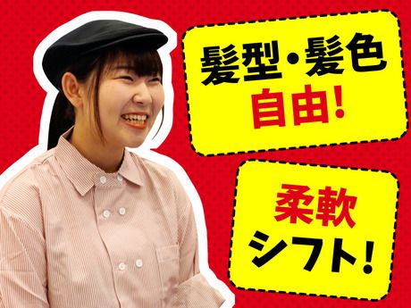 【保険制度】 雇用保険、労災保険、健康保険、厚生年金 待遇・福利厚生 【福利厚生】 ■社員登用あり ■制服貸与 ■食事補助あり ■社員割引あり ■バイク・車通勤OK ■昇給あり ■髪型自由 ■友達と応募歓迎