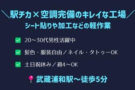 仕事内容 【仕事内容】 \製造工場での軽作業スタッフ募集!/ 商業施設やオフィスビルに使われる壁材を扱うお仕事! 難しい作業はなく、希望や適性に合わせて持ち場を決めてもらえるので安心◎ <お仕事内容> ★加工業務 壁材を機械にセットしてボタンを押すだけ! 出来上がった製品を次の工程へ流す (機械の設定もありますが、苦手な方にはお任せしません♪) ★板にシートを貼って機械に流す ★間違っていないかメジャーで測定 ★接着剤を布巾で拭き塗り いずれも覚えやすい作業ばかり!同じ持ち場に2~3人いるので未経験でも安心です◎ 【アピールポイント】 ・20代~40代男性活躍 ・冷暖房完備のキレイな工場! ・オフィスグリコでおやつタイムも◎ ・スタッフは20~40代まで幅広く活躍中! ・髪色・ネイル・ピアス・ひげ・タトゥーOK! ・GパンOK、作業着不要! 「自由だけど、しっかり働きたい」 そんな若手さんを応援します! 気になったらお気軽にご応募ください♪ 【勤務地の補足】 埼玉県さいたま市南区白幡