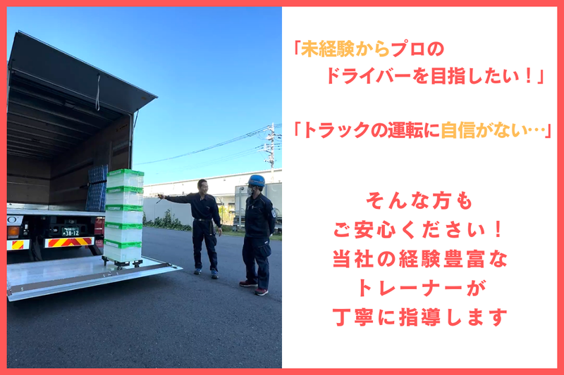 仕事内容: ✅仕事内容 2t車両で商業施設に配送をお願いいたします。 ✅積地 埼玉県三郷市 ✅配送エリア ・埼玉県:三郷市、吉川市、越谷市、松伏町、草加市、八潮市 ・千葉県:松戸市、市川市 ・東京都:足立区、葛飾区、江戸川区 ✅配送内容 1日、約5件~15件(午前便、午後便の2回転) 埼玉、東京、千葉など関東圏のエリアで、気持ちに余裕をもって運行できます。 ✅車両について ・ドラック専用スマフォアプリを活用、最適ルート案内 ・専用給油、洗車カード貸与 ・ETC、バックカメラ、Bluetooth対応機器装備 ⭐️お仕事の1日の流れをご紹介⭐️ 午前便 出 勤 8:30 積 込 9:00~9:30 配 達 9:30~ 午後便 積 込 15:00~15:30 配 達 15:30~ 帰 庫 19:00 ⭐️研修3ヶ月の内 1ヶ月の内容は⭐️ ↓ ・トレーナー研修(座学) 運転のルール、運転方法等 ・本社研修(座学) 会社や事業、就業規則等 ↓ ・先輩研修 トラック助手席に乗り、 積降ろし作業を手伝いながらルートや注意事項等 ・先輩を助手席に乗せて、実務研修 ⭐️電話応募大歓迎⭐️ Webでの応募はいろいろと入力が面倒… →そんな方は、電話応募でOK! 面接前に履歴書は必要となりますが、 それまでの流れがスムーズに進みますので、お気軽にご連絡ください♪ 〇。 〇。 〇。 〇。 〇。 〇。 〇。 電話番号 0120-953-058 担当: 諏佐まで 「求人の件」とお問合わせください。 受付時間 9:00〜18:00 〇。 〇。 〇。 〇。 〇。 〇。 〇。