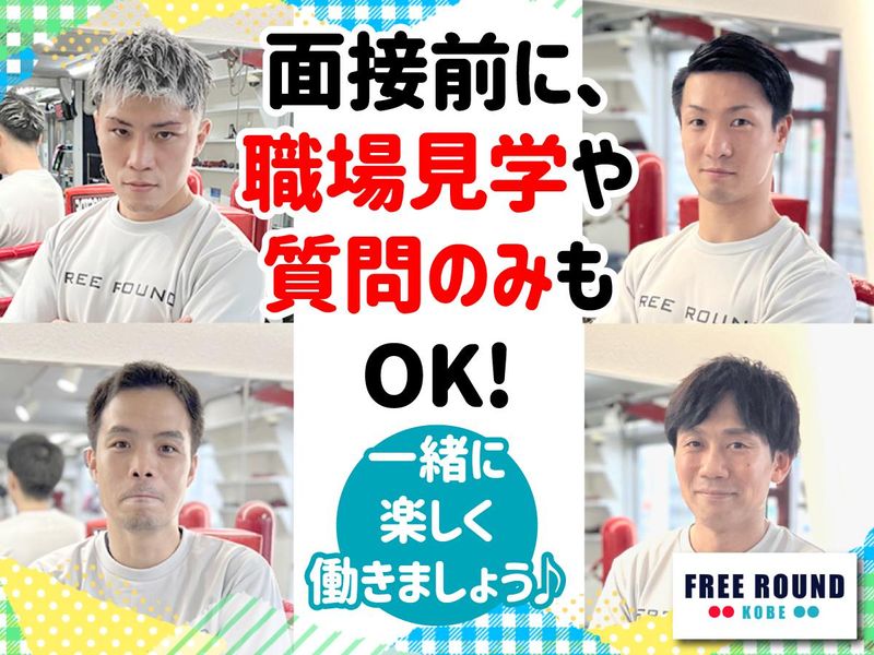 仕事内容 ✅なんらかの格闘技の経験必須 ✅教えた経験がなくても、試合経験がなくてもOK ✅もちろんある方も大歓迎♪ ✅楽しく明るい社風です! -------------------- 【業務内容】 ・ボクシングのミット受けやマスの指導 ・筋トレのサポート ・ジムの簡単な清掃 ・お客様とのコミュニケーション PCを使用する事務作業や営業は一切なし! 最初は先輩がそばについてくれるので安心! いきなり一人になることはありません! 無理なく休憩OK! スタッフからも「休憩しておいで!」 と声を掛けるようにしています。 -------------------- 【こんなボクシングジムです】 FREE ROUNDは予約制やコマ制ではなく、 生徒さんが好きなタイミングで 自由に通えるスタイルです。 そのため「◯時から◯時まではこのレッスン」 という決まった枠はなく、 そのときジムに来ている生徒さんの相手になったり、 アドバイスをしたりしてサポートします。 ボクシングといっても寸止めで行うので、 痛い思いをすることはありませんし、 走り回ったり筋トレをしたり ハードなトレーニングもありません。 スタッフ自身も一緒に軽く体を動かしながら、 生徒さんをサポートしていく感じです! 【生徒さんについて】 生徒さんの男女比は7:3で ほかのジムに比べると女性が多め! 10代の高校生から71歳の方まで、 いろんな世代の方が通ってくださっています。 「ボクシングに憧れがあって」 「健康のために体を動かしたくて」 「綺麗な筋肉のあるメリハリボディになりたくて」 そんな想いで通い始めた、 未経験スタートの生徒さんが9割のジムです♪ 【こんな雰囲気】 「ボクシングジムって、 みんなムキムキでちょっと怖そう…」 って思った方、 うちは全然そんなことないです!(笑) みんなでボクシングを楽しみながら、 でもやるときはしっかり! そんなメリハリのあるジムです。 代表をはじめスタッフのみんなも 優しくていかつい雰囲気とは真逆! 普段から世間話や仕事の話も気軽にできる なんでも相談しやすい関係性です! 元プロボクサーや現役の選手も所属しているので ボクシングで気になることがあれば なんでも聞いてくださいね! ↓スタッフ紹介はこちらから! https://www.freeround.jp/staff/ -------------------- 【下記いずれかの経験必須】 打撃系格闘技の経験必須♪ ※プロ・アマ問わず試合経験がなくてもOK ※趣味で習っていたという方もOK 【こんな方にピッタリ】 ・アマチュア大会に出場したことがある方 ・学生時代に部活やクラブで格闘技に打ち込んでいた方 ・ブランクがあるけど、もう一度格闘技に関わりたい方 ・大会や試合に出ることを目指して練習していた方 ・道場やジムで練習を続けてきた方 ・趣味で格闘技をしている方、していた方 ・キックボクシングや空手などで人に教えたことがある方 ・格闘技ジムや道場でインストラクターをしていた方 ・子ども向け格闘技クラスを担当したことがある方 ・初心者向けにわかりやすく教えるのが得意な方 ・パーソナルトレーナーとしての勤務経験がある方 ・フィットネスクラブやスポーツジムでインストラクターとして働いたことがある方 ・ストレッチやコンディショニングの指導ができる方 ・フィジカルトレーニングの知識・実践経験がある方 ・アスリートのトレーニングに携わった経験がある方 ・キッズ向けスポーツ教室で指導経験がある方 ・人の成長を一緒に喜べる方 ・体を動かすことが好きな方 ・明るく前向きな対応ができる方 ・楽しい雰囲気の職場で働きたい方 ・教えることにやりがいを感じる方 ・コミュニケーションを大切にできる方 ・トレーニングやボディメイクが好きな方 ・自分自身も成長したいという思いがある方 ・スポーツや運動を通じて社会に貢献したい方 ・自分の経験を活かして誰かをサポートしたい方 ・人に教えたことはないけれど、動きを見せたりアドバイスするのが好きな方 【下記キーワードで検索している打撃系格闘技の経験者も大歓迎】 ボクシング、キックボクシング、空手、ムエタイ、総合格闘技(MMA)、柔道、レスリング、テコンドー、カポエイラ、合気道、柔術、武道、シュートボクシング、サンボ、中国武術(カンフー)、実戦系・フルコンタクト系格闘技など