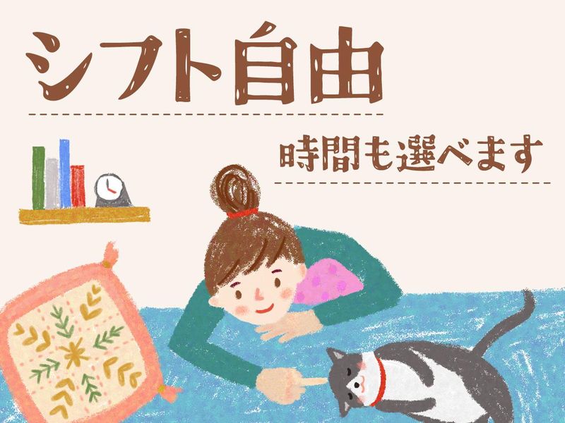 求めている人材 \女性スタッフ活躍中/ <歓迎条件> ★未経験・アルバイトデビュー ★フリーター・Wワーク ★自分のペースで働きたい ★授業終わりに働きたい大学生 ★家事・育児の合間に働きたい主婦(夫) ★友達同士の応募 ★20代・30代・40代・50代のスタッフ多数活躍中!