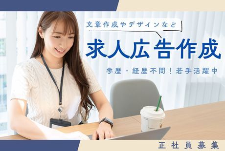 仕事内容 ■求人広告に関わりながら、未経験からオフィスワークをスタートできます 採用に欠かせない「求人広告」を作成する事務のお仕事です。 PCの基本操作ができれば、広告や人材業界の知識がなくても大丈夫! 未経験からでも、しっかりスキルが身につけられます! 「事務として働きたいけど、少し専門性を持ちたい」 「未経験から新しい分野に挑戦したい」 「ワークライフバランスを大事にしたい」 そんな方にピッタリのお仕事です。 まずはお気軽にご応募ください! ■具体的なお仕事内容は… 【 求人広告の作成・修正 】 ★メインとなる業務です! 自社採用ページ(JOBPAPER)や、様々な求人サイトで求人を掲載します。 求人内に載せる文章の作成や画像制作をお願いします。 (今見ているこの求人も、先輩社員が作成したものです!) 『求人にどういう内容の記載があったら応募しやすいか』 『数多くある求人の中でどういう求人原稿なら目にとまるか』 など求職者の目線になりながら求人原稿の作成手配などを行います。 【 予算の管理 】 採用を行う際に使用する予算の管理を行います。 様々な求人サイトがある中で、どのサイトにどのくらいの費用で 求人を掲載するかを考え、案件ごとの予算を管理していきます。 【 実績の確認やデータの入力・確認 】 求人の掲載後は応募数などの実績確認を行います。 どのサイトから応募が何名入って、何名が採用に至ったかなどを集計し、 効率良く採用活動を行うための対応をします。 他にも、 社内担当者や求人媒体社との打ち合わせなども行います。 広告作成を通じて、文章力や採用マーケティングの知識も身につきます。 「ただの事務」ではなく、人の仕事探しを支えるやりがいあるポジションです。 「新しいことにチャレンジしてみたい!」 「デザインにちょっと興味がある」 「SNSの閲覧数を気にして見てしまう」 そんな方にピッタリのお仕事です! ▼実際の勤務スケジュール(一例) 09:00 ~ 出勤、メールチェック、1日のタスク整理 09:30 ~ 朝礼 10:00 ~ 応募数の確認・データ入力 11:00 ~ 応募数をみて、求人原稿のブラッシュアップ 12:00 ~ お昼休憩(食堂でご飯が食べられます♪) 13:00 ~ 新規案件の確認、どの媒体で求人を掲載するかを計画 14:00 ~ 媒体社宛てに求人掲載の依頼など 16:00 ~ 媒体社と打ち合わせ(Zoom) 17:30 ~ 翌日のタスク整理など デスクワーク未経験でもOK!スキルが身につくお仕事です。 入社後はマニュアルに沿って先輩がしっかりサポート◎ 分からないことはスグに聞ける環境なので安心してくださいね! 最初は求人掲載までの流れを掴んで頂くために 先輩社員のサポートとして業務を覚えていきます。 習得レベルに応じてレクチャーするので、 未経験でも安心して始められます。 データ入力や書類作成ばかりの一般事務とは違い、 バナー画像の作成やデータ分析なども行うため 幅広いスキルを身につけることができます。 【未経験からスタートした先輩の声(入社4年目)】 Q.日々のお仕事の中で、面白いと思うところは? A.「正解がない」ところです! 求人広告は、出せば必ず応募が来るというものではありません。 自分が作成した求人の応募数を毎日チェックして、 「なぜ応募が少ないんだろう?」 「どうしたらもっと見てもらえるかな?」 と考えながら改善していきます。 例えば 文章の言い回しを少し変えたり、 画像を差し替えたり、 掲載するエリアを見直したり。 それだけで応募数がグッと伸びることもあるんです。 自分の工夫が“数字”として結果に表れるので、 小さな変化でも達成感があります。 どんな言葉が響くのか。 どんな見せ方が効果的なのか。 自分で考えて、試して、改善していく。 その過程は、ちょっとしたゲームのようでとても楽しいです。 「ただの事務」ではなく、 自分のアイデアが活きる仕事だと思います。