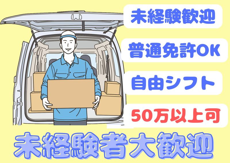仕事内容 大手運送会社提携配送ドライバー ネットショップなどECサイトで注文される商品や、 大手運送会社様の商品を、 軽貨物自動車で運ぶお仕事です。 個人作業で、あなたのペースで進められますよ! ======== 直行・直帰もOK! ======== ≪配送商品の一例≫ ・日用品、雑貨 ・飲料、保存食など ・ギフト ・お中元、お歳暮 積荷はダンボールその他になります。 ※大きくて重いものは少なめです <お仕事の流れ> 電話やメールにてスケジュールの確認 ↓ 荷物をピックアップ ↓ 配送 ↓ 荷物をお届け ↓ 帰宅 < 配送エリア> 浦安市北栄、浦安市日の出 周辺 ※他、ご希望のエリアをご紹介しますので お気軽にご相談ください。 ――――――――――――――――― エリア拡大による増員募集! \Eternityの良いところ!/ ■経験不問! 普通免許さえあればすぐ働けます! 車両なくても大丈夫です!※AT限定可 ■未経験大歓迎! 今いるスタッフは90%以上が未経験スタートです ■3ヵ月分、車両リース代無料 ※条件あり ■サポート体制(OJT研修あり) 入社後は慣れるまで、同乗研修を行います ■採用は人柄重視 ■頑張り次第で高月収! 月収50万以上稼ぐことも可能! ■無理なく自由な働き方が出来ます 希望シフト×週4日~勤務OK あなたの都合に合わせて働けるので、 空いた時間を有効活用できWワークもOKです 【ポイント】 ・即勤務OK ・WワークOK ・車両レンタル(リース)初めの3ヶ月無料 ・ロイヤリティーなし 【安心制度】 ・インボイス制度の面倒な手続き不要 (国の補助8割、残りの2割は給与天引き) ・貨物保険や、リース会社保険各種あり ――――――――――――――――― [会社からのお願い] プレゼントで購入されたものを贈る人、 1年の感謝の気持ちを商品に込めて贈る人など 気持ちが詰まった商品が多数あります。 迅速・丁寧に笑顔で配達してくださいね! ――――――――――――――――― [今いるスタッフの入社のきっかけ] 稼げる仕事がしたい 若い方が多い活気ある職場で働きたい など・・・ 直近スタッフ2名入社 前職は、不動産営業や飲食店からの転職です! 20代30代40代多数活躍中! サラリーマンでは実現できない収入が得られます。 荷物は軽量の物が多く体の負担が少なめです *こんな経験活かせます 軽貨物運転手、運送業、配送ドライバー 等