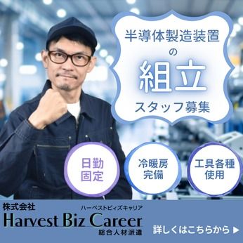 資格 ■長期就業を希望している方 ■半導体関連の組立の経験がある方 ■組立工具の使用経験がある方 ■工具類(ドライバー・六角レンチ・トルクレンチ・スパナ・ニッパetc) ■幅広い年齢層の方が活躍しております!