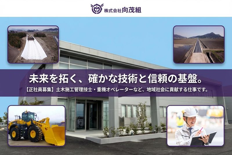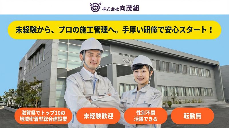 仕事内容 \地域インフラを支える施工管理業務/ □ 河川改修・道路整備・治水工事など公共工事の施工管理 □ ドローン・3D測量・ICT建設機械を活用したDX施工の推進 □ 工程・品質・安全・原価管理および協力会社との調整 滋賀県東近江エリアを中心に、「より早く、より安全に、より確実な施工」を実現する仕事です。 ▼簡単な募集内容▼ 【雇用形態】正社員 【給与】年収:400万円~600万円 【勤務時間】8:00~17:00 【勤務地】滋賀県東近江市今崎町514番地4(本社) 【募集要件】未経験OK/施工管理に興味のある方 ★この求人のアピールポイント★ ◇ 1915年創業!滋賀県トップクラスの地域密着型総合建設会社 ◇ ドローン・3D測量・ICT建機など最先端DX施工を導入 ◇ 工事現場は東近江管内中心◎宿泊出張なし ◇ アニバーサリー休暇・学校行事休暇など特別休暇が充実 ◇ 傷病手当金補填保険加入で万一の休業時も安心 ==================== 【どんな会社?】 ㈱向茂組は1915年に東近江市(旧八日市)で創業し、現在では土木・建築工事、骨材製造、運輸事業を展開する滋賀県内TOP10クラスの地域密着型総合建設会社です。 公共工事を中心に、河川・道路・治水・防災工事など地域インフラの中核を担い続けています。また現場のDX化にも積極的に取り組み、安全性・生産性・品質向上を同時に実現しています。 ★ICT施工・DX施工とは★ ドローンやレーザースキャナーを使った三次元測量により、 ・測量時間の大幅短縮 ・設計・施工計画の精度向上 ・ICT建設機械による自動制御施工 を実現しています。経験の浅い技術者でも、安全かつ高精度な施工が可能です。 【お仕事内容】 土木・建築工事における施工管理業務をお任せします。 具体的には ■ 工程・品質・安全・原価管理 ■ 現場写真撮影、出来形・品質管理 ■ 協力会社・職人との打合せ・調整 ■ 書類作成、発注者対応 ■ ICT建設機械・ドローン測量の活用 ※現場監督が重機に乗る「多能工化」も推進しています。 《入社後の流れ》 未経験の方は、 ・現場巡回、写真管理 ・安全書類作成(KY活動など) ・先輩社員の補助業務 からスタート。徐々に図面理解や施工管理業務を習得し、将来的には施工管理技士資格取得を目指せます。 ※有資格・経験者は即戦力として活躍可能です。 【会社の魅力】 ◪ DX施工で効率的・安全な現場づくり ◪ 多くの施工管理有資格者が在籍し学べる環境 ◪ 自分が関わった構造物が地域に残るやりがい ◪ 除雪・防災など地域貢献度の高い仕事 「地域で育ち、地域を守る」そんな使命感を共有できる仲間が集まっています。