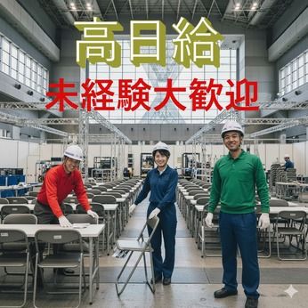 仕事内容 <好調な業績により多数のスタッフを募集しています> 当社は業界トップクラスのイベント企業。 あなたの都合に合わせて働ける環境をご用意しております。 <仕事内容> イベント会場での設営・撤去作業 机・椅子の配置、パーテーション運搬など イベント運営や倉庫内の軽作業も 勤務地: 関東1都3県 東京ビッグサイト 幕張メッセ パシフィコ横浜など <短時間・副業にぴったり!> ? 短時間勤務大歓迎 ? 午前だけ働いて午後は他の予定もOK ? 収入アップを目指す副業にも最適 ? 短期から始めて長期に切り替える方も多数 <多様な経験者から応募いただき当社で活躍中> コンビニ、カフェ、医療事務、受付、配送、在宅ワークなど 様々な経験を持つ方が参加! 土日休みの正社員の方の副業としても人気です。