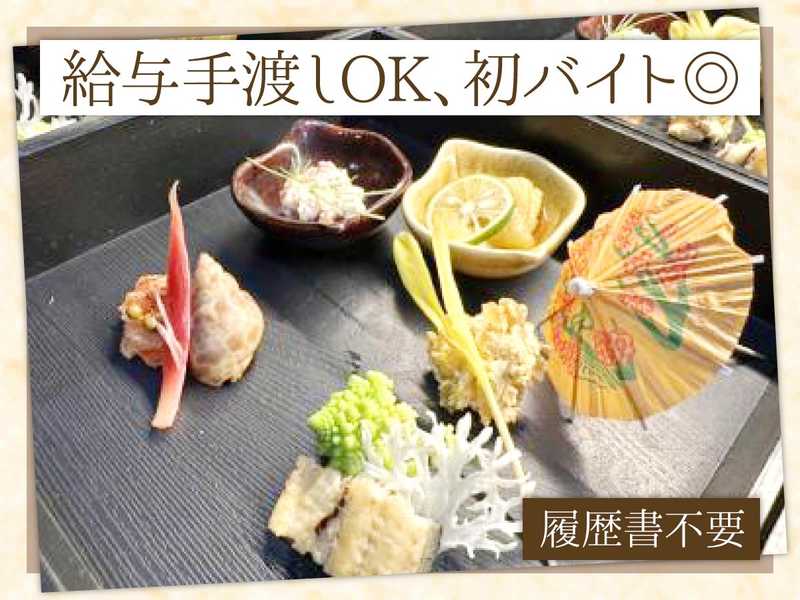求めている人材 ================= ▼正社員として勤務したい方も大歓迎♪ ✅落ち着いた和食店で長く働きたい方歓迎。 安定した環境でスキルを磨き、 正社員としてキャリアアップ可能。 ✅マネジメント経験、 調理の専門知識、コミュニケーション能力のある方 社員登用の場合 ・月給30万円~ ・週休2日制 ・年2回の昇給査定 ・賞与(利益比例) ・各種手当あり ================= ▼アルバイト希望の方には! ▶どんな方も歓迎! 未経験者歓迎! 年齢・経験不問で大募集◎ 学生の初バイトも歓迎 主婦活躍中 フリーター活躍中 社会人のWワークもOK ▶現在は、 主婦スタッフ・学生スタッフ Wワークの方を中心に活躍中! 【こんな方に向いています】 ▶自分で考えて動ける方 ある程度仕事を覚えていただいた後は、 自分で考えて行動をしていただく ことがメインになります。 お客さんが少し引いて手が空いたら、 少し拭き掃除をしたり・・・ 電話が来たら手を止めて 予約の管理をしたり・・・ ▶「気づいたら退勤時間になっていた」 あっという間に時間が経つ! そんな働き方がしたい方!