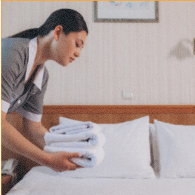 職場環境 「分業制の客室清掃で黙々ワーク」 スタッフ同士で声を掛け合いながら、 時間内にチームで客室を仕上げています。 急な用事の際はシフト相談もしやすく、 家庭や学業と両立しながら長く働きやすい 雰囲気の職場です。