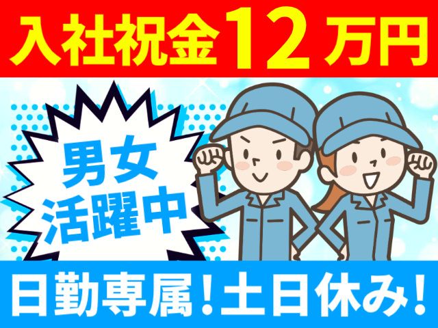 <入社祝い金12万円支給>時給1,200円!男女活躍中!日勤!月収19万円以上可!マイカー通勤OK!
