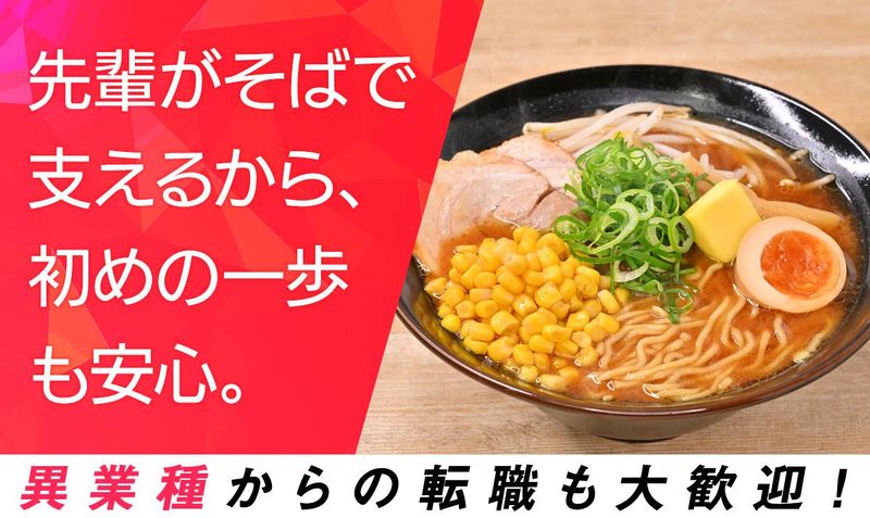 求めている人材 【正社員】 ★飲食店などで調理経験のある方大歓迎! ■異業種からの転職も大歓迎 └アナタの挑戦を応援します!! 【店長候補】 ■管理職経験者 ■シフト管理、売上管理、企画運営経験者 ⭐調理業務経験者大歓迎⭐ ――――――――――――――――・…* ラーメン店に限らず、飲食店での 調理業務経験者は特に歓迎します!! 雇用形態、勤務期間、業種は問いません! 経験を活かしてスキルを磨いたり、 キャリアUP可能な環境が整っています♪ ⭐こんな方におすすめです⭐ ――――――――――――――――・…* ・調理経験を存分に発揮したい方 ・新しい環境でチャレンジしたい方 ・そろそろ安定した仕事に就きたい方 ・シフトの希望が出しやすい環境がいい方 ・正社員として長く活躍したい方 ・やりがいを感じながら働きたい方 まずはお気軽にご応募ください♪