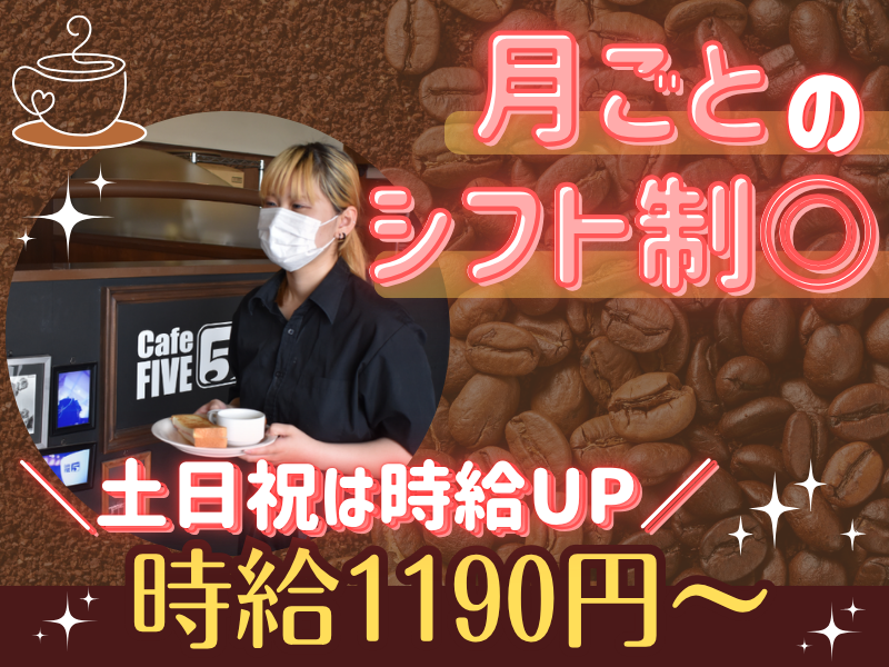 仕事内容 / 1日モーニングが楽しめる オシャレカフェ♪・。 \ ================ ⭐土日祝は時給1190円~! ⭐週2日、1日4時間~OK! ⭐土日祝のみOK! ⭐髪型・ネイル自由! ⭐マイカー・自転車通勤もOK! ⭐学生・フリーターさん活躍中! ================ **** お仕事について **** キッチン業務の全般をお任せします! 例えば・・・ ・ドリンク作り ・トーストを焼く など 1ヶ月あればマスターできます♪ - お電話でのお問い合わせも大歓迎! TEL:0586-76-1103 090-1784-0816 担当/林 - ✅カフェファイブについて ――――――――――――― 地元の方に愛される オシャレなカフェ★ 三角屋根が目印の CAFE FIVE! モーニングサービスは終日あり。 開店と同時にたくさんのお客様が 来店されます♪ ✅未経験の方も大歓迎! ――――――――――――― 飲食未経験の方も大歓迎! 実際に未経験から始めたスタッフも多く 初めてのお仕事にチャレンジする 不安な気持ちも理解しています◎ もちろん、慣れるまでは覚えること などもあるので大変ですが、 先輩スタッフやオーナー、 常連のお客様など 優しく見守っていてくれるので 焦らず少しずつ覚えてくれればOK◎ 慣れてくると常連のお客様との お喋りが楽しみになりますよ★ ✅ご応募待ちしています。 ――――――――――――― ■長く働ける方 ■土日祝・大型連休勤務できる方 は優遇します♪ ぜひ一度ご応募ください◎