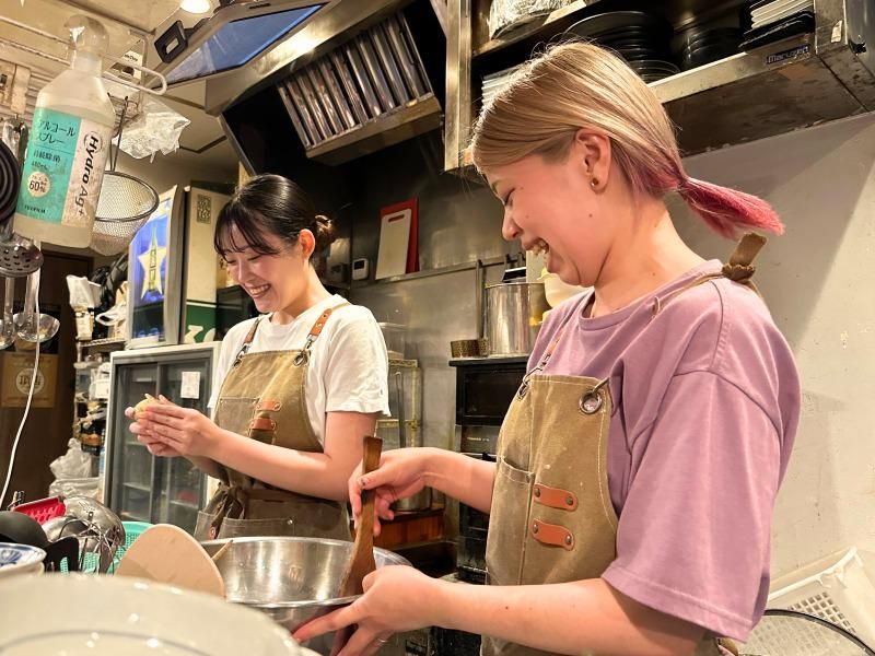 求めている人材 ■キッチン応募大歓迎! 料理が好き! 料理してみたい! 料理を学んでみたい! などちょっとした動機で大丈夫! キッチン応募してくれた方には、 高待遇を用意しており、 時給も1,350円からスタート! ■もちろん未経験大歓迎です! →過去たくさん未経験の方が働いてきたので、 教育体制も自信あり! ドシドシご応募お待ちしています。 ■ほぼ全員未経験スタート! 経験者の方も今は積極的に採用中! 社員じゃなくても 料理のアレンジを自分でやってみたり 『こんなんどうですか!』と メニューを作ってもらうのも大歓迎! やってみたい!が試せる楽しい職場! オープンキッチンなので 自分の料理でお客さんの笑顔が見れるのも楽しいです!