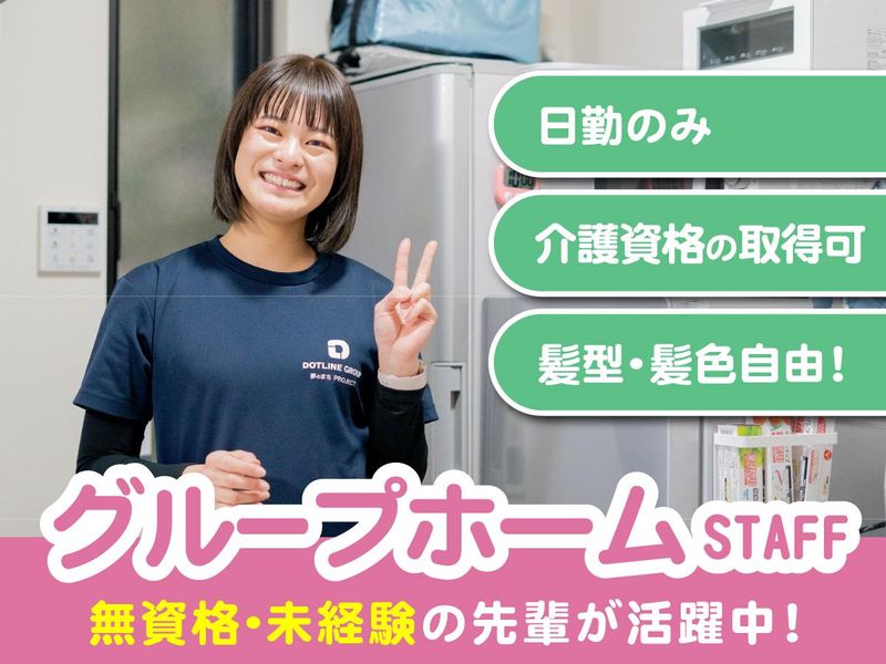 求めている人材 ⭐基本的なPCスキル(Word・Excel) があればOK ⭐必要な資格はありません! ⭐職歴も不問!福祉業界が初めてな方も もちろん大歓迎です♪ ⭐介護スタッフへのキャリアアップも 可能なのでご相談ください! <こんな方は歓迎!> ✅家事スキルを活かして働きたい方 ✅調理・清掃などの仕事が好きな方 ✅定年退職後でまだ働きたい方 ✅コミュニケーションが好きな方 ✅介護職員の経験がある方や、 介護・看護に関わる資格をお持ちの方 <下記の勤務経験のある方尚大歓迎> ・障害者支援員 ・支援員 ・就労支援員 ・社会福祉士 ・グループホーム ・福祉・介護業界 ・・・―・・―・・―・・―・・―・・―・・―・・―・・・ ⭐働きながら資格取得も目指せます⭐ ドットラインでは、グループ内に 介護福祉士の養成校を運営しており、 未経験からでもステップアップできる 資格取得支援制度が整っています。 ✨こんなメリットがあります! ◆入社後に必要な資格を取得可能! ◆30種類以上の資格に対応◎ ◆費用は会社が全額サポート(規定あり) ◆仕事をしながらスキルも給与もUP! 「働きながら学びたい」 「手に職をつけたい」 そんな方にもピッタリです♪ ・・・―・・―・・―・・―・・―・・―・・―・・―・・・