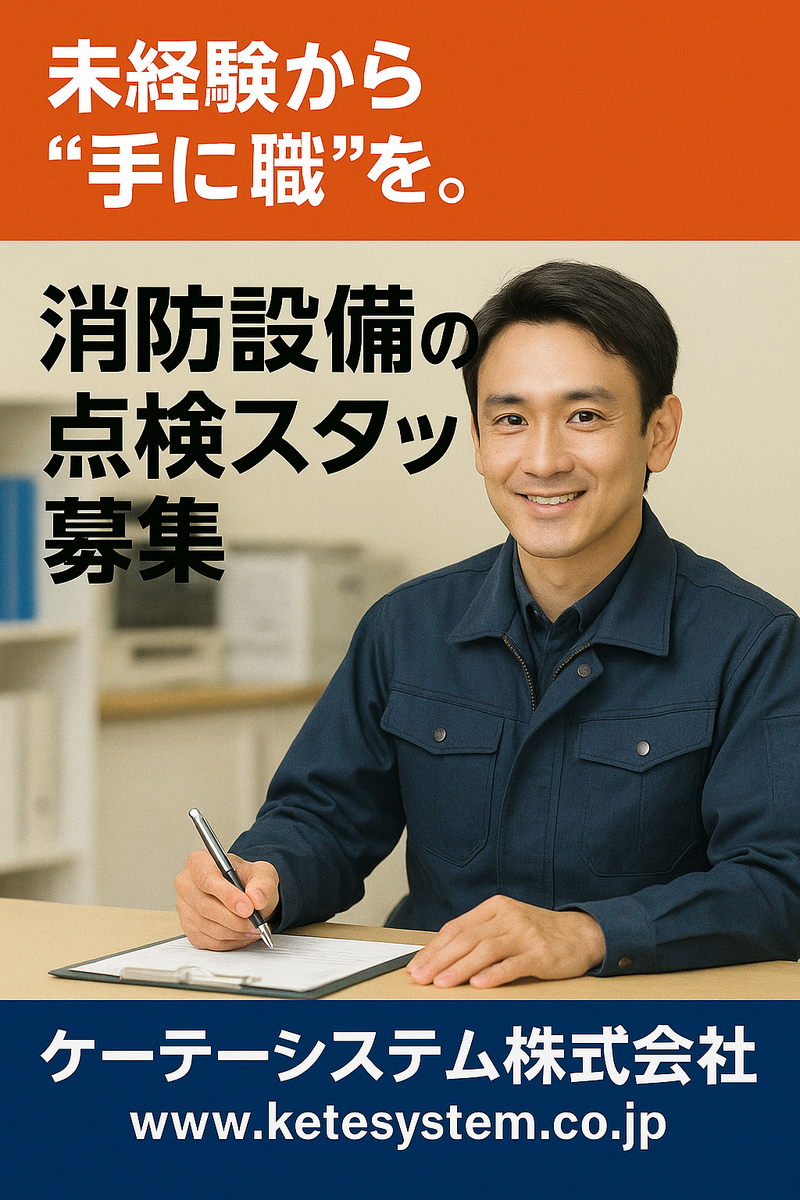 仕事内容 【キャッチコピー】 派手さも、高給も約束できません。 約束できるのは、「一生食いっぱぐれない国家資格」と「社会を守る誇り」です。 【はじめに:正直にお伝えします】 当社が求めているのは、「とりあえず楽な仕事がしたい」という方ではありません。 「地味でもいいから、嘘のない、正義感のある仕事がしたい」 「営業トークや愛想笑いは苦手だが、正確な作業と勉強には自信がある」 そんな30代・40代前半の、真面目な方を求めています。 ■ ここが覚悟のしどころ(厳しさについて) 当社は未経験者を歓迎しますが、「勉強しなくてもいい」わけではありません。 プロの技術者として独り立ちしていただくために、明確なハードルを設けています。 1. 半年後の試験に合格してください 入社後、実務経験を積みながら勉強し、半年後に**国家資格「消防設備士 乙種第6類(消火器)」**を受験していただきます。 これは消防設備士としての「登竜門」となる資格です。 合格した場合: 晴れて「現場リーダー」としてデビュー。 アルバイトスタッフ(助手)を連れて現場を回り、点検業務を指揮します。 資格手当も支給され、給与ベースがアップします。 不合格の場合: 次に合格するまで、ずっと「助手(運転・雑務係)」のままです。 現場リーダーになることはできません。 2. 合格後も、勉強は続きます 乙6類はあくまでスタートラインです。 プロの技術者として、その後も**「甲種(1類~5類)」や「電気工事士」**など、より高度な国家資格の取得を常に目指していただきます。 資格が増える=扱える設備が増える=手当が増える。 「現状維持でいい」という考えは捨ててください。常に知識をアップデートし、自分の市場価値を高めようとする姿勢を求めます。 厳しいようですが、中級程度の理系知識(物理・電気の基礎など)と、真面目な学習意欲があれば必ず受かる試験です。 「入社したら勉強したくない」という方には、正直つらい環境です。逆に**「頑張った分だけ正当に評価されたい(資格=収入)」**という方には、最高の環境です。 ■ 仕事の「リアル」な環境 地味な仕事です 作業着は地味なグレーの上下。髪型や身だしなみにも規定があります(金髪・長髪等は不可)。 華やかなIT企業や、稼げる不動産営業のような派手さは一切ありません。 給与は「ボチボチ」です 正直に申し上げますと、業界的に給与水準はそこまで高くありません。 しかし、「建設業ほどきつくない」「汚れない」「危険が少ない」そして何より**「景気に左右されない圧倒的な安定感」**があります。 ■ それでも、この仕事を選ぶ理由 1. 「理系マインド」が活きる 黙々とチェックし、事実を正確に記録し、見積もりを作る。論理的な思考(地頭の良さ)が評価される仕事です。 2. 「先生」と呼ばれる仕事 私たちは法律を守る側の人間として点検を行います。 お客様からは「点検ありがとうございます」と頼りにされ、邪険に扱われることはほとんどありません。 3. 移動の運転は「部下」にお任せ 晴れて資格を取りリーダーになれば、現場への運転はアルバイトスタッフが行います。 あなたは移動中、助手席で図面のチェックや報告書の作成など、**「資格者しかできない頭脳労働」**に専念してください。 【具体的な業務内容】 神戸・兵庫エリアのビルやマンションにて、消防設備の法定点検を行います。 感知器の作動テスト、消火器のチェック 不備箇所の特定と報告書の作成 お客様への改修提案 ※黙々とチェックし、事実を正確に記録する仕事です。 【職場環境について】 神戸支店: 建物は古く、昭和レトロな雰囲気です。1階倉庫・2階事務所。 雰囲気: 事務所内は喫煙可(分煙)。静かで落ち着いた環境です。 人間関係: 「陽キャ」なノリは必要ありません。挨拶と報告・連絡・相談さえしっかりできれば、あとは黙々と自分の仕事をしてくださればOKです。 【求める人物像】 45歳以下の方(長期勤続によるキャリア形成のため/例外事由3号のイ) 学歴不問・未経験歓迎 ※ただし、入社後に国家資格の勉強をする意欲がある方に限ります。 普通自動車運転免許(AT限定可) 以下のいずれかに当てはまる方 「学校の勉強は嫌いじゃなかった(特に理数系)」 「営業トークよりも、正確な作業と報告が得意だ」 「地味でも、人に胸を張れる『正義感』のある仕事がしたい」 「タバコを吸える環境で働きたい」