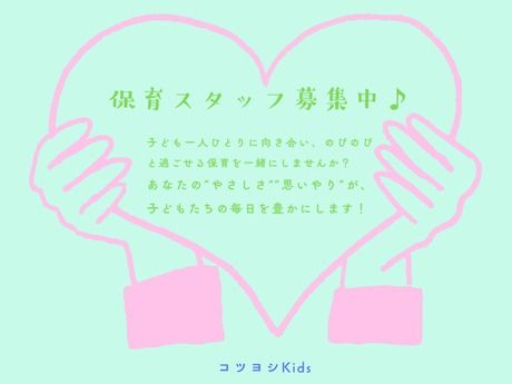 仕事内容 【仕事内容】 【現在募集中/令和8年4月スタートも歓迎◎】 オシャレも仕事も楽しめる♪定時で帰れてプライベートも充実◎ ブランクのある方や、未経験の方も大歓迎♪ ****************************** ★主な仕事内容☆彡 ・保育補助(おむつ替え・ミルク、食事、排泄・着替えなどの生活援助) ・お散歩の付き添い ・給食、おやつ後の片付け清掃 ・担任のサポート など *安心ポイント* ・ブランクがある方も丁寧にサポートします♪ ・経験が浅くても先輩保育士がしっかりフォローします♪ ・残業なし&持ち帰り仕事ゼロを徹底♪ 地域との繋がりを大切にし、地域の子育て支援に積極的に寄与します。 一人ひとりの子どもが主役である保育園でありたいと考えています。 自社のHPもぜひご覧ください! コツヨシKids https://kotuyosi-kids.com 【アピールポイント】 ★残業なし&持ち帰り仕事ゼロ★ パートさんも時間きっちりで働ける環境◎プライベートの予定が立てやすく、家庭との両立もバッチリです♪ ★ブランクがあっても大丈夫★ 「育児が落ち着いたから少しだけ働きたい」「経験が浅くて不安・・・」という方も大歓迎♪先輩スタッフが丁寧にサポートします◎ ★あたたかいチームワークの中でお仕事★ 困ったときはすぐに声をかけ合える、やさしい職場です◎「こんなに雰囲気がいいなんてびっくり♪」という声も多数♪ ★お休みの取りやすさ◎★ 有休取得率100%♪ シフトの相談もしやすく、お休み希望も通りやすい環境◎お子さんの急なお熱や学校行事なども柔軟に対応しています♪ TikTokにて各園の雰囲気が覗けます♪ @kty_kidsにてチェック♪