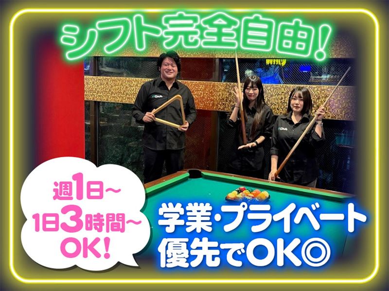 仕事内容 ╭─────────────・⭐・・─╮ ⛳オシャレ自由!髪色ネイルピアスFREE ⛳スタッフ特典でお得にダーツが楽しめる ⛳しっかり稼げる深夜時給1500円! ╰─・・⭐・─────────────╯ ┏━━━━━━━━┓ ✨ お仕事内容 ✨ ┗━━━━━━━━┛ ダーツやビアポン、 カラオケを楽しめるバーにて、 ⏩接客やドリンク作りなどホール業務全般 ⏩ダーツ・ビアポンの説明やセッティング 上記をメインにお任せします。 ダーツやビアポンの経験者はもちろん、 全くの未経験の方も大歓迎! ルールや遊び方などは イチから丁寧に教えます! まずは、ゲームのルールを覚える所から スタートしていきましょう♪ ✦・┈┈┈┈┈ ・✦✦・┈┈┈┈┈ ・✦ ┏━━━━━━━━━━┓ ✨ ビアポンとは… ✨ ┗━━━━━━━━━━┛ ドリンクが入ったカップに ピンポン玉を投げ入れて得点を競う、 世間的にはまだまだ知られていないゲーム。 多くのお客様に知っていただき、 楽しんでもらえるよう 盛りあげていきましょう♪ ✦・┈┈┈┈┈ ・✦✦・┈┈┈┈┈ ・✦ ✨週1日~、1日3時間~勤務OK!  ̄ ̄ ̄ ̄ ̄ ̄ ̄ ̄ ̄ ̄ ̄ ̄ ̄ ̄ ̄ ̄ 自分のスケジュールに合わせて 勤務日数や時間帯を柔軟に調整できます! プライベート重視の方も安心です! ✨オシャレも楽しみながら働ける!  ̄ ̄ ̄ ̄ ̄ ̄ ̄ ̄ ̄ ̄ ̄ ̄ ̄ ̄ ̄ ̄ ̄ 制服はありますが、それ以外は自由☆ 髪型・髪色自由!ネイル・ピアスもOK! いつものスタイルのまま、 自分らしく働けます! 仕事もオシャレも 思いっきり楽しみましょう♪ ✨嬉しいスタッフ特典あり!  ̄ ̄ ̄ ̄ ̄ ̄ ̄ ̄ ̄ ̄ ̄ ̄ ̄ ̄ お得に遊べちゃう従業員割引あり! ダーツ好きには嬉しいメリットです! ✦・┈┈┈┈┈ ・✦✦・┈┈┈┈┈ ・✦