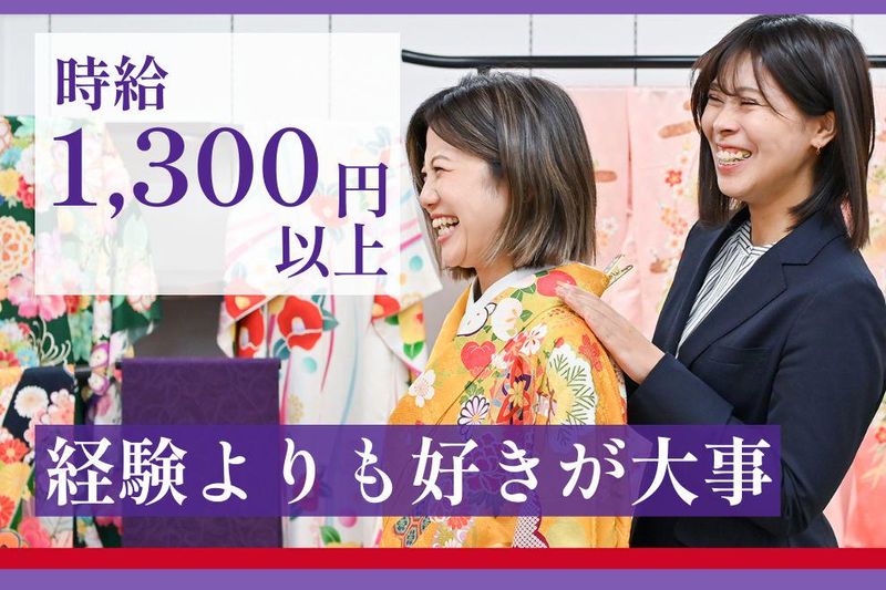求めている人材 ≪必須条件≫ 土日いずれか出勤できる方 \未経験OK/ どんな志望動機でもOK! 【求める人物像】 ◎女性スタッフ活躍中 ◎きものに興味がある方 ◎無資格OK、ブランクOK ◎復職やキャリアチェンジを考えている方 ◎顧客とリレーションを築くのが得意な方 ◎子育てが一段落してきた方 【歓迎要件】 ・新卒・第二新卒OK ・20代、30代、40代、50代、 主婦(夫)さんも活躍中 【活かしていただけるご経験】 ・百貨店、ブランドショップ、 アクセサリーショップ、セレクトショップなどで 浴衣、着物、洋服、バッグ等の販売や接客