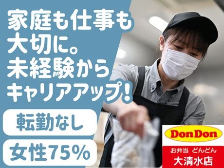 仕事内容 <30~40代の女性スタッフ活躍中!> ●転勤なし・地域で長く安定して働ける! ●未経験から店長へキャリアアップ可能 ●賞与年2回+インセンティブで収入も安心 ●家庭と両立できるシフト制で長期安定 <仕事内容> 地域で愛されるお弁当店「どんどん」での 店長業務をお願いします。 まずは調理や接客などの基本業務から スタート。慣れてきたら 店舗運営全般に関わっていただきます。 ■調理・接客(オーダー対応・調理補助) ■食材の仕入れ・発注管理 ■スタッフの教育・シフト管理 ■売上・コスト管理・衛生管理 未経験の方も大歓迎! 丁寧な研修があるので 半年~1年で店長として活躍できる スキルが身に付きます。 <ここがポイント> 【1】転勤なし・地域密着で長期安定 引っ越しを伴う転勤がないため 家庭や生活基盤を大切にできます。 【2】未経験からキャリアアップ 店長デビューはもちろん 希望に応じて エリアマネージャーも目指せます。 【3】30~40代女性が多数活躍 女性社員比率75%! 近い世代の仲間が多く相談しやすい雰囲気。 【4】収入の安定 月給22万円以上 +賞与年2回+インセンティブありで安心。 【5】家庭と両立できるシフト制 生活リズムに合わせて働けるので 長く続けやすい環境です。 <会社の安定性> 創業40年、静岡県を中心に 直営70店舗以上を展開する安定企業。 ほとんどの店舗を直営運営しているため 風通しが良く、地域に根差した 店舗づくりができます。 地元で腰を据えて長く働きたい方に ピッタリな職場です◎