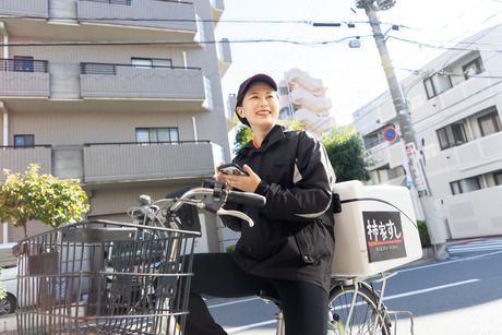 仕事内容 <おすすめポイント> ★高時給!土日祝や深夜はさらにUP! ★配達時間外も時給支給! ★シフト自由!週1日、3時間からOK! ★髪色・髪型自由! ★まかないあり♪美味しいお寿司が食べられる! ◎年齢やブランクを気にせず働けます◎ たくさん稼ぎたいフリーターの方や 60歳以上のシニア層や中高年の方も多数活躍中です! 短期の募集の場合でも、 他のお仕事などで3ヶ月以上働ける方は優遇します! <具体的な仕事内容> ■宅配すしの配達 ■使用済みの桶の回収 ■空いた時間でポスティング ~・~・~・~・~・~・~・~・ ・配達は1時間に2~3件程度♪ ・無理のないペースで働けます◎ ・基本的には店内にて調理業務をお願いすることはありません◎ ・まずは短期で働きたい方もOK♪ ~・~・~・~・~・~・~・~・ <お仕事の流れ> 注文が入ったら住所を確認 ▼ 商品を準備 ▼ 電動自転車で商品をお届け 注文がない時はポスティングなどを行います。 お客様と接するのは商品をお渡しする際の短い時間。 接客が苦手な方もあいさつができれば問題ありません! <未経験でも大丈夫> ◆丁寧な研修をご用意 ◆わかりやすいマニュアルを用意 ◆先輩スタッフがしっかりサポート! いちど道になれてしまえば、 むずかしいことはなくスムーズに できるようになりますよ♪ ◇柿家すしとは◇ 人気のネタをふんだんに盛り込んだ宅配すしのお店です。ピザーラを展開するフォーシーズグループだから安心してはたらけます! ★津田沼店の雰囲気を紹介!大手ならではの福利厚生も充実★ 学生が多く在籍していますが、 時間帯によって主婦やフリーターなど幅広い方が活躍中! 全体的に明るいのが特徴で 忙しい時でもチームワークを大事にしており、 新人の方に対してもウェルカムの雰囲気です! ピザーラを展開する会社だから割引特典もたくさん♪ お得な割引制度を活用できます! ~・~・~・~・~・~・~・ ★まかない300円! ★お寿司が定価の30%OFF ★全国の系列店舗で割引あり! (ピザーラ、ジョエル・ロブション、TO THE HERBS、クア・アイナなど) ~・~・~・~・~・~・~・