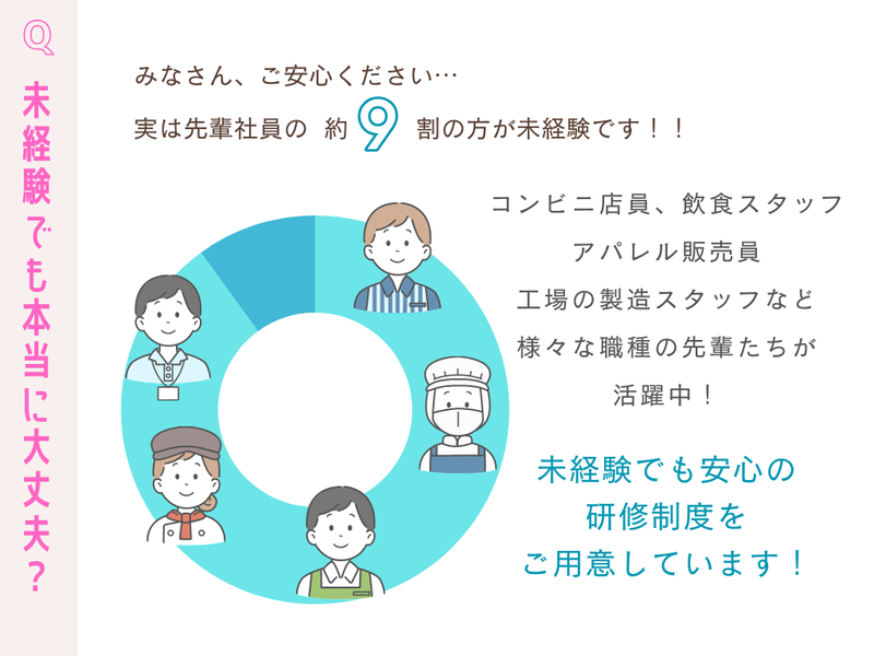 仕事内容 \\✨この求人のアピールポイント✨//  ̄ ̄V ̄ ̄ ̄ ̄ ̄ ̄ ̄ ̄ ̄ ̄ ̄ ̄ ̄ ̄ ̄ ̄ ̄ ✅1時間単位の有給や子育て応援休暇 ✅住宅・家族手当など生活支援が充実 ✅飛び込みやノルマなしのルート営業 ✅未経験歓迎!先輩の丁寧なサポート 「売る」ことよりも 「信頼される」ことを大切にする会社です。 「ノルマがきつそう」 「未経験だとついていけないかも」 「ガツガツ売り込むのは苦手」 もしそう思っているなら、 当社の仕事は、あなたの想像とは まったく違うかもしれません。 ✨未経験でも安心の理由✨ ✅ 「名刺の渡し方」から教えます 社会人経験が浅くても大丈夫。 ビジネスマナーから丁寧に研修します。 ✅ 飛び込み・テレアポなし 知らない施設への訪問や 電話営業は一切ありません! ✅ チーム制でサポート 一人で放り出すことはありません。 先輩が必ず横について教えます。 ✅ ノルマ・自腹購入なし 数字に追われて精神的に辛い… なんてことはさせません。 ⭐具体的なお仕事⭐  ̄ ̄V ̄ ̄ ̄ ̄ ̄ ̄ ̄ ̄ ̄ ̄ ̄ ̄ ̄ ̄ ̄ ̄ ̄ ⏩業務範囲・対象 └すでにお取引のある介護・医療施設 <顧客対応・現場作業> ・定期訪問での困りごとのヒアリング ・見守りセンサーなど機器のご案内 ・車いすや福祉用具の点検や修理対応 ★モノを売るより現場の課題を一緒に 解決するスタイルです。 <社内業務・その他> ・タブレットやスマホでの事務処理 ・ゆくゆくは新規施設への営業活動 ★外出先でも事務処理が可能で無駄な 帰社時間を減らせます。 ⏩進め方・スケジュール └最初の3ヶ月は先輩の車に同乗し、 横で話を聞くことからスタートします。 ⭐最初の3ヶ月は… 先輩の運転する車の助手席に乗って、 まずは横でニコニコ話を聞くことから。 専門知識はゼロで大丈夫ですよ! ■「自分らしい働き方」を応援 (プライベートも大切にできます) ┈┈┈┈┈┈┈┈┈┈┈┈┈┈┈┈•• ✨休みの取りやすさ抜群! 「1時間単位」で有給が使えるので、 「今夜は友達とご飯だから1時間早く帰る」 「朝、役所に行ってから出社」 なんて使い方も自由自在です。 ✨奨学金返済もサポート 「お給料から返済するのが大変…」 そんな若手社員のために、 会社が返済を支援する制度があります! (※規定あり) ✨実家暮らしでも「住宅手当」 一人暮らしはもちろん、 実家から通う方にも支給されます。 毎月のお小遣いが増える感覚で みんな喜んでいます♪ ■正直にお伝えします (ぶっちゃけトーク) ┈┈┈┈┈┈┈┈┈┈┈•• ✅力仕事、あります! ベッドや車いすを運ぶので、 ちょっとした運動になります。 「ずっとデスクワークは眠くなる…」 という方には、 適度に体を動かせて気分転換になると好評! もちろん、重いものは チームで協力して運ぶのでご安心を。 ✅土曜出勤の場合もあり お客様の都合で土曜に出ることもありますが、 その分、平日に振替休日を取れます。 「平日の空いているお店に行ける!」 「銀行や病院に行きやすい」と メリットを感じている先輩も多いです◎ ■先輩たちの前職は? (9割が未経験スタートです!) ┈┈┈┈┈┈┈┈┈┈┈┈┈┈•• ・飲食店スタッフ ・アパレル販売員 ・工場の製造スタッフ ・フリーター など 「正社員は初めて」というメンバーも 今では立派に活躍しています。 あなたの「新しい一歩」を 私たちが全力で応援します!