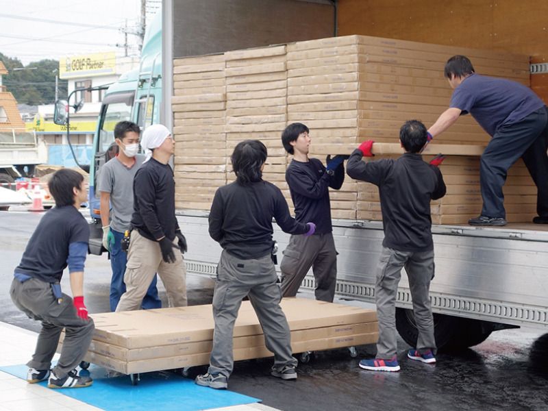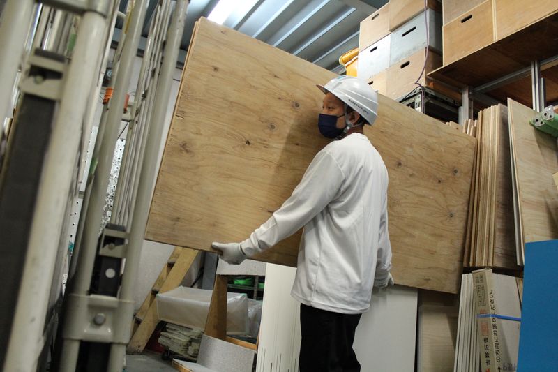 材料を運ぶ軽作業スタッフ