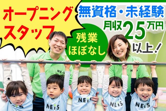 仕事内容 ⭐オープニングスタッフ募集!⭐ 奈良県初の「ネイス体操教室」でインストラクター大募集! 【9割が未経験スタート】丁寧な研修でサポート 【キレイな職場】ショッピングモール内 【丁寧な研修】サポート充実で初めての人も安心 ✨オープニングスタッフ募集✨ 奈良県初出店!全国に160教室以上を展開する【ネイス体操教室】の一員として、体操指導だけでなく、受付や保護者とのコミュニケーションなど幅広い業務を担当していただきます。 未経験スタートが約9割!特別なスポーツ経験は問いません。充実した研修制度があるので、体操経験がなくても安心してデビューできます。 子どもたちの成長を間近で感じられる、やりがいのあるお仕事です。 ○:-・+・-:○:-・+・-:○:-・+・-:○ 【オススメポイント】 ✅未経験OK!基礎から学べる丁寧な研修あり ✅年間休日120日!週休2日×残業少なめ ✅若手が活躍中!20代の管理職登用も多数 ○:-・+・-:○:-・+・-:○:-・+・-:○ 【主な業務内容】 2歳~小学生が対象の体操教室でのインストラクターのお仕事です。 具体的には… ■子どもの運動の補助・指導 ■受付・入会の事務対応 ■教室準備 ■保護者とのコミュニケーション ■バク転教室の業務 …子どもから大人まで全年齢対象。幅広い生徒さんの指導をお願いいたします。ご自身はバク転ができなくてもOKです! ※1時間ごとにクラスを入れ替えながらレッスンをおこないます。 ※1講師に対して、生徒数は最大8名。インストラクター2名で指導します。 【1日の流れ(例:平日)】 13:30 出勤・教室準備・事務作業 14:00 休憩 14:30 ミーティング 15:00 レッスン開始(1コマ50分)※最大8名を2名体制で担当 19:15 終礼・片付け 20:50 退勤 ※午前中にレッスンがある日もあります。 【ネイス体操教室とは?】 日本初の子ども向け体操教室チェーンとして全国に展開し、160教室以上を運営しています。 コンセプトは「子どもの未来をつくるサードプレイス」。 「自分はできるんだ!」「自分ってすごい!」という自己肯定感を育むことを目指し、日々子どもたちと向き合っています。 日々の小さな「できた!」に立ち会い、ともに喜び合える、かけがえのない時間をあなたも一緒に作っていきませんか? ==================== 未経験9割!安心の研修制度 ==================== インストラクターの9割は未経験からスタート。 特別な運動経験や資格は必要ありません。 入社後は充実した研修で、指導方法や安全管理、子どもとの接し方まで基礎から学べます。 子どもたちを安全にサポートするためのマニュアルも整っており、安心感は抜群です。 ==================== 教育業界に興味がある方にピッタリ ==================== 子どもと関わる仕事がしたい 教育に携わりたい そんな想いを形にしませんか? ネイス体操教室では、体操を通じて子どもたちの「心と体」を育む教育を実践しています。 専門的なスキルよりも、「やってみよう」「できたね」と寄り添う気持ちが大切です。 経験ではなく人柄で活躍できる環境です。 子どもたちの笑顔と成長を感じながら、教育に携われる喜びをぜひ実感してください。 ==================== ワークライフバランスを重視できる職場 ==================== ⭐年間休日120日 ⭐完全週休2日制 ⭐残業少なめ プライベートと両立できる環境が整っています。 自分の時間をしっかり確保できるため、趣味や家庭との両立を大切にしたい方に最適です。 大型連休や季節休暇で、しっかりリフレッシュしてまた子どもたちに向き合える働き方が可能。 体力的に無理なく続けられる環境なので、長期的なキャリア形成にも安心感があります。 【求人ID-YIN】