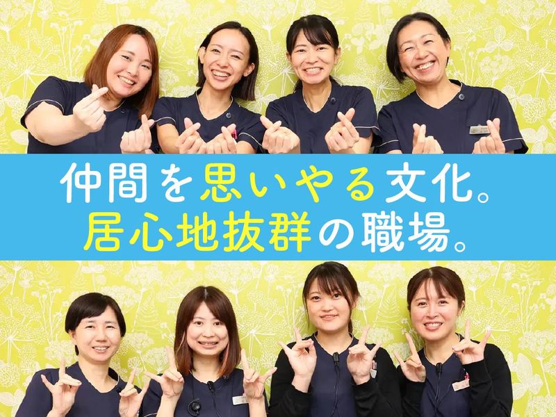 職場環境 実は、クリニックのマニュアルや ルール作り、クレドに至るまで みんなで考えて創りました! 何度もスタッフでミーティングして、 付箋にたくさんのキーワードを 出し合いました。 そのおかげでより仲間を想い、 大事にできる組織になれたと思います。 喫煙所:なし(敷地内全て禁煙)