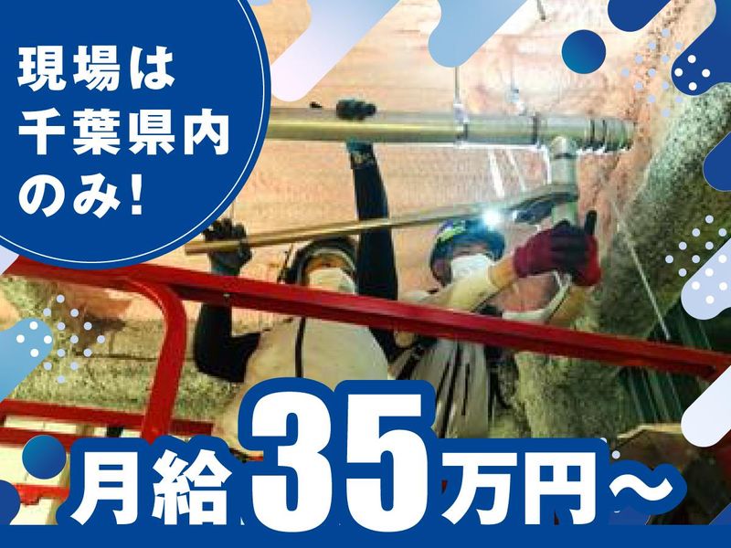 仕事内容 ⭐・・―・・―・・―・・―・・―・・―・・―・・―・・⭐ 入社祝い金と業績好調で安心して スタートできる環境が整っています。 少数精鋭ならではの近い距離感で、 未経験の方にも基礎から丁寧に向き合い、 着実な成長をしっかりサポートします。 「安定した収入」と「手に職」を 同時に叶えたい方に、ぴったりの職場です。 ⭐・・―・・―・・―・・―・・―・・―・・―・・―・・⭐ 【仕事内容】 千葉県内の学校・病院・市役所など、 みんなが知ってる建物の設備工事です。 物流倉庫やマンションの現場もあります。 【 おまかせするのは…】 ✅空調設備の取り付け ✅天井や床下での配管工事 ✅消火設備の設置 など ◎基本1日1現場が中心です。 落ち着いて作業に集中できます。 ◎長くても半年以内で完了する案件が多く、 区切りをつけて働ける環境です。 ◎コツコツ取り組む方に向いた仕事です。 スピードよりていねいさを重視し、 焦らず経験を積める体制です。 ・―・・―・・―・・―・・―・・―・・―・・―・・―・・―・ 【ここがポイント!】 ✨安心して働ける7つの魅力✨ ✅千葉県内のみで出張なし 泊まりが無く、家族との時間も確保。 ✅月給35万円~で毎年昇給あり 毎年1万円以上昇給し収入が安定✨ ✅完全週休2日など働き方に柔軟対応 土日休み希望も相談可能です。 ✅行政やマンション中心の安定案件 公共施設が多く景気に左右されにくい◎ ✅元請け・直取引中心でムリのない体制 少数精鋭で品質に集中できます。 ✅業績好調につき採用を強化中! 案件が増加し成長段階の会社です。 ✅家族も安心の福利厚生 入社祝い金20万円※規定ありや 資格支援制度など待遇も充実。 ・―・・―・・―・・―・・―・・―・・―・・―・・―・・―・