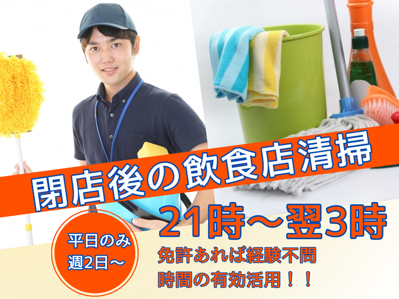 仕事内容 ―・―・―・―・―・―・―・―・― ✨閉店後の深夜の飲食店清掃✨ 平日週2日~OK! ―・―・―・―・―・―・―・―・― 【仕事内容】 営業終了後の飲食店の巡回清掃のお仕事♪ ✅フロアやキッチンの清掃 ✅床掃除や拭き掃除 ✅ゴミ出し など 【勤務地】 ⏩都内飲食店 ⏩集合場所:「大森町駅」よりバス10分 スタッフでみんなで向かいます ―・―・―・―・―・―・―・―・― 未経験スタートの先輩も多数活躍中! まずはカンタンなお仕事から 慣れていきましょう♪ 分からない事があれば、 近くの先輩に質問できます◎ なんでも相談して下さいね! ―・―・―・―・―・―・―・―・―