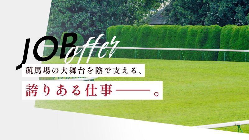 アピールポイント \競馬場での業務詳細/ レースを行うと内側の馬場が荒れてくるので、 コースの柵を3m~4m外に設置変えします。 作業終了後も週末に行われるレースを 現地観戦やテレビ観戦をするのが楽しみです。 \未経験でもOK/ OJT形式の研修で、 先輩社員によるサポートも万全! 未経験の方は資材運びや片付け、 先輩のサポートなどできることから はじめていきましょう。 \収入UPが叶う/ 昇給と年2回の賞与あり。 交通費が支給されるので 金銭面の負担はかかりません。