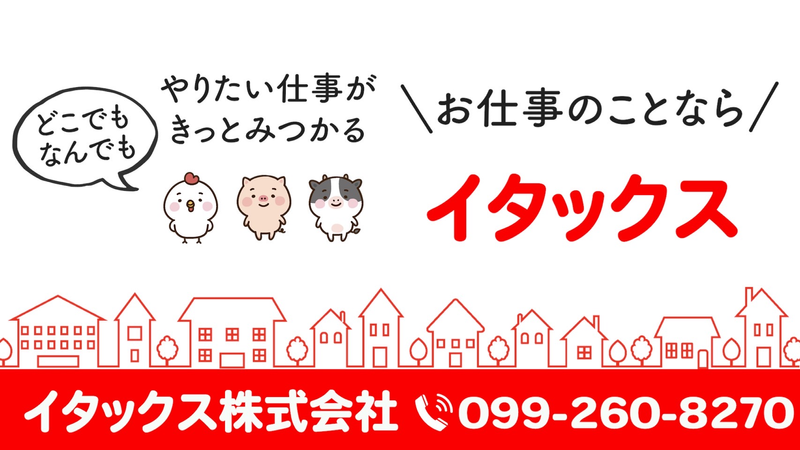 選考プロセス 【応募後の流れ・選考プロセス】 1.応募 ↓ 2.担当者より面談調整などのご連絡をさせて頂きます ↓ 3.面談・面接実施 ↓ 4.採用決定のご連絡 ↓ 5.お仕事開始 ※ご応募〜お仕事開始までは、平均1週間程度になります。 ※在職中で今すぐの転職が難しい方も、調整のご相談が可能です。 【登録地】 イタックス株式会社 所在地:鹿児島県鹿児島市小松原1丁目44−8 担当者:採用担当 電話番号:0992102430 希望の場所で出張面接も致します♪