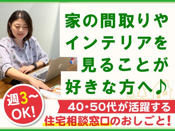 応募資格 <未経験大歓迎!> ◎「接客経験がある方」「人と話すことが好きな方」大歓迎! ◎現在活躍しているスタッフも【 未経験スタートが8割 】ですのでご安心ください! 【必須】パソコンでの入力業務ができる方 (数字や文字が打てればOK!すぐに慣れます◎) ※スピードや、専門的なPCスキルは必要ありません! ―・・―・・―・・―・・―・・―・・―・・―・・―・・― <家好きの方にピッタリ!> ◎昔から家やインテリアが好き ◎SNSでついつい物件や間取りなどを見てしまう ◎街中でモデルハウスやこだわりの家が建っているとつい足を止めてしまう ◎家を建てたときの知識を活かしてみたい など <こんな不安を抱えている方にも!> ◎接客の仕事が好きだけど、もう少しじっくりお話する接客の仕事は無いかなあ ◎外回りをするような接客業はしたくない… ◎現在アパレル販売をしているけど、商品と自分の年齢にミスマッチを感じてきた… ◎接客×デスクワークがしたいけど、コールセンターのような非対面の仕事は合っていない… など <活躍中のスタッフは…> アルバイト・パートの方は40代・50代の主婦の方が中心に活躍中! 「不動産や住宅関係の経験はないけど間取りやインテリアを見るのが好き」な方や、 「接客販売の経験を生かして人と話す仕事がしたい」方など様々な方が活躍しています。 ★自分がマイホームを建てたときの「経験や知識」、家やインテリア、間取りをみるとワクワクするなど、「スキ」を活かせるシーンも沢山ありますよ♪