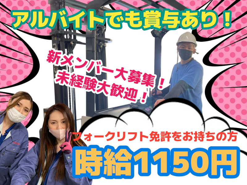 求めている人材 ★フォークリフト免許をお持ちの方 ★未経験の方歓迎 ★ブランクがある方もOK ★フリーター歓迎 ★主婦(夫)歓迎 ★ママさんも活動中 ★工場経験者歓迎 ★男性スタッフ活躍中 ★中高年の方も歓迎 <こんな方にオススメ> ★日勤のみのお仕事をお探しの方 ★時間の融通がきく お仕事をお探しの方 ★子育てやWワークと両立したい方