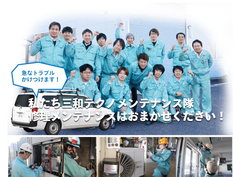 【仕事内容】 ╲25年4月は、7%の昇給!業績好調の安定企業/ 空調(業務用エアコン)を軸に、給排水衛生、電気、防災など各種設備をワンストップで提供する当社。事業拡大のため新規スタッフを募集します。 【三和テクノのオススメポイント】 ✅資格取得を全力支援! ✅昇給 賞与 各種手当も充実! ✅年間休日115日! ■具体的なお仕事内容 メンテナンススタッフとして、空調設備の点検・修理をお任せします。 ✅エアコンの点検や修理 ✅先輩スタッフのサポート など 入社後、約1年は先輩社員と一緒に仕事をしていただきます。計測機器や工具の使い方など、一から教えていきます。 メーカーの技術講習を受講し、基礎的な技術を習得することができます。それ以降も、スキルアップを全面的にバックアップします! 【職場について】 正社員のうち、高校卒の方が約6割と多く、また20代・30代の社員が64%を占め、若い社員が学歴等に関係なく活躍している職場です。 「いつも礼儀正しく、明るく、元気よく」 を実践できる社員像を目指し、日々和気あいあいとした中にも礼儀やマナーを守り、楽しみながら仕事に取り組んでいます。 ============================ 人びとの快適を守る。それが私たちの仕事。 ============================ 暑い夏も寒い冬も、子どもも大人も、家でも職場でも、一年じゅう快適に過ごせるように、私たちは人びとの生活を守っています。 普段は人の目に触れないところでの仕事。でも、社会が回っていくためには絶対に欠かせない仕事。これまでも、そしてこれからも、縁の下で支えます! =================== 努力が実る、報われる環境 =================== ✨「転職して本当に良かった!」 ✨「頑張った分しっかり昇給した!」 ✨「色々な仕事を任されるようになった」 ✨「たくさんの資格を取らせてもらった」 など、喜びの声があふれる環境が自慢です。 資格を取得したり新たな挑戦をしたりなど、一生懸命努力して実った成果を、給与や賞与、昇進という形で確実に還元いたします。 「技術を身につけたい」「成長したい」という思いを叶える職場を探している方、未経験から技術職を目指したい方、ぜひご応募ください! ============ 当社が選ばれる理由 ============ ✅「雰囲気の良さ」 ✅「成長できる環境」 ✅「安定性や制度の充実」 これらが当社の評判です。人間関係が良く、成長しやすい転職先を求めている方、未経験から技術職を目指している方、ぜひご応募ください!✨ 【求人ID-ST02】