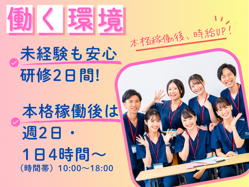 求めている人材 *未経験者歓迎 *仕事復帰応援 *お仕事が久しぶりの⽅もOK *「⼈と接することが好き」な⽅大歓迎 *学歴不問 *主婦・主夫歓迎 *フリーター歓迎 <⭐こんな⽅にオススメ> 家事や育児の合間に働きたい! Wワークで効率よく+αの収⼊が欲しい! 出費に備えて、短期間だけ働きたい! ・・・などなど 働き⽅は柔軟に対応します!
