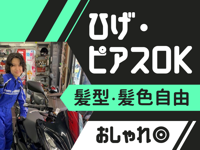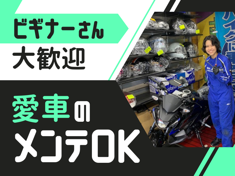 仕事内容 ただの「バイト」で 終わらせるには 沼がすぎる…!! 大好きなバイクを とことん追求できる職場で、 趣味と仕事を両立させませんか? 🏍💨 ✨ 魅 力 ポ イ ン ト 多 数 ✨ ✅未経験・フリーター活躍中! ✅週4・5日フルで安定して働ける ✅愛車のバイク点検・メンテもOK♪ ✅スタッフ割でパーツ・バイク購入OK ✅プロの整備士のワザを間近で習得可 / もちろん、未経験大歓迎です🔰 20代30代のフリーターさん活躍中! \ 👉 お仕事の内容は? ┈┈┈┈┈┈┈┈┈┈┈┈┈┈┈┈┈┈ ◇ バイクのメンテナンス ◇ 簡単な接客・受付 など 「エンジンがかからない…」 「どのバイクが合うか教えて!」 そんなお客様のお悩みに寄り添い、 サポートをお願いいたします! 👉 入社後のステップ ┈┈┈┈┈┈┈┈┈┈┈┈┈┈┈┈┈┈ |🏍Step:1|顔を覚えるところから かんたんな受付対応や、 バイクの洗車・磨きからスタート! |🏍Step:2|基本のメンテナンス オイル交換やタイヤの空気圧チェックなど 日常的な点検作業をお教えします。 |🏍Step:3|一生モノの技術習得へ 本格的な修理やパーツ交換について レクチャーしていきます。 🔰初めてでもご安心ください! 近くの先輩やベテラン整備士が すかさずフォローに入るので、 バイク知識が浅くても大丈夫です◎ 未経験スタートのスタッフが、 エンジンをバラせるまでに 成長しています♪ もちろん、わからないことがあれば、 いつでも相談してくださいね! 👉 ぬくぬく ♨ 快適に働けます ┈┈┈┈┈┈┈┈┈┈┈┈┈┈┈┈┈┈ ✅希望者には【電熱ベスト】貸与! ┗ 作業着も“超暖”メカニックスーツあり ✅ホットドリンクウォーマー完備! ┗ 飲み物をアツアツにキープ ✅ウォーターサーバーは冷熱対応◎ ┗ お昼にカップ麺を食べるスタッフも♪ スタッフの健康第一で、 快適に働ける職場環境を整えています!! 👉 志望動機はなんでも大歓迎✨ ┈┈┈┈┈┈┈┈┈┈┈┈┈┈┈┈┈┈ 「趣味を仕事にしたい」 「将来は整備士になりたい」 「とにかくバイクと関わりたい!」 …などなど、皆さんバラバラ! たくさんのバイクに 触れることができるので 自分のお気に入りのバイクが 見つかるかもしれませんよ! 📢 スタッフの声  ̄V ̄ ̄ ̄ ̄ ̄ ̄ ̄ ̄ ̄ ̄ ̄ ̄ ̄ ̄ ̄ ̄ ̄ 「子どもが手を離れたタイミングで、 昔から好きだったバイクの世界に!」 「お客様と趣味トークに花が咲きます」 「仲間内でツーリングすることもあって、 どのコースにするか毎回盛り上がります」 「おススメのカスタム方法や アレンジの仕方を学べるのが嬉しいです」 というように、 バイク愛をお持ちの方が多数在籍⚡ 週4~5日の安定したシフトで、 きちんと収入を守りながら 一生役立つ「技術」を習得しませんか? 🏍💨 ⭐入社日相談OK!(3月スタートなど) まずはお気軽にご応募ください♪