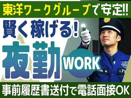 仕事内容 <<おすすめポイントのご紹介>> ■ 来社不要!カンタン面接OK! ■ 事前に履歴書を送付すれば電話面接OK! 自宅で完結!お気軽にご応募ください★ ■・・・■・・・■・・・■・・・■ *休憩の時間がきっちり取れます♪ *終わったらサクッと帰宅!直行直帰OK *ピンチの時も安心!日払い、週払いOK(規定有/PaysUP!) *頑張りをしっかり評価!賞与年2回 *安定希望の方も!社員登用あり *知識・経験は必要ナシ!未経験大歓迎! *資格保持者は優遇 *WEB面接もOK!お気軽にご相談ください <<後楽園・茗荷谷駅周辺の施設で警備のオシゴト>> 施設の巡回・監視など 夜勤の警備をお任せします。 先輩スタッフのほとんどが 未経験からのスタート。 こまめな休憩や1時間交代などもあるので ムリなく活躍できる環境です! <<他にも勤務地・案件多数あり>> スタッフの前職・本業はさまざま。 居酒屋・ファミレス・コンビニ・ フードデリバリー・引っ越しバイト・ 軽作業・清掃業・土木業界等から転職した方も。 入社後に資格取得も可能なので、 「安定した収入が欲しい」「資格取得で給与UPしたい」など 手に職をつけて成長していきたい方にオススメ! 費用は会社負担なのでご安心ください。 うれしいスタッフ特典がいっぱい! <使える!便利!嬉しいスタッフ特典あり> ・ホテル、レストラン最大50%オフ ・映画割引あり(1000円~) ・全国レジャー施設優待(半額~無料) ・毎日使えるグルメサービス ・国内外旅行ツアー代、航空券、ホテル代補助 ・各種お祝い制度 ・住まい、健康サポートなど <<先輩スタッフの声>> ◎1990年設立 ◎約3300名の社員が活躍中 ◎東洋ワークグループの一員 <安定性&将来性に太鼓判> ・業績は右肩上がりをキープ! ・半永久的に需要がある警備業 ・グローバルにも事業を展開中 <こんな方も応援> ・経験を活かしてより働きやすい環境へ ・いつまでも現役で活躍したい ・キャリア志向である など