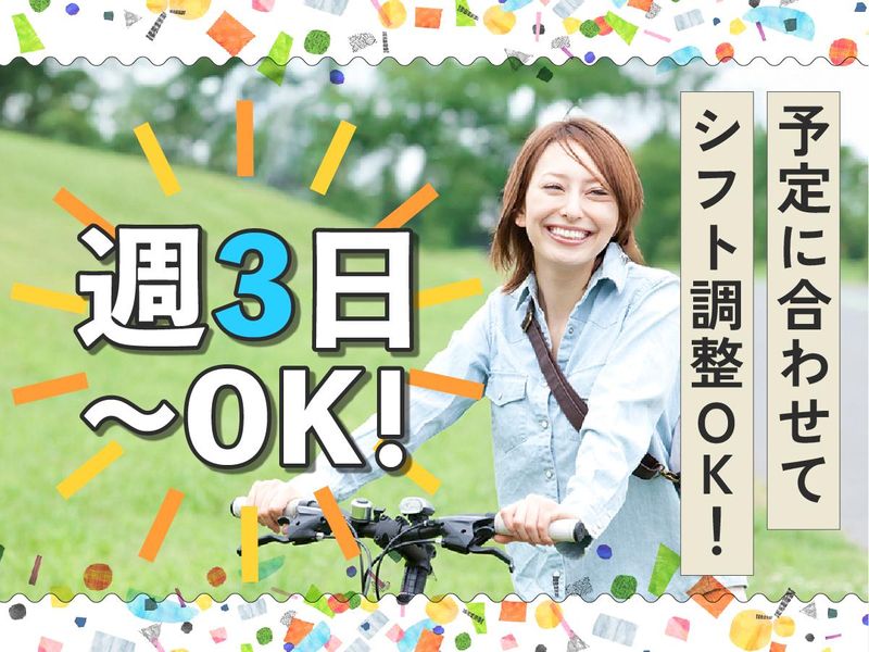 勤務時間詳細 【勤務曜日】 月~金の中で週3~4日のシフト制 (土日祝休み) 【勤務時間】 (1)8:30~17:00(休憩60分) (2)9:00~17:30(休憩60分) ※残業なし 【勤務期間】 4月中旬頃~長期 働くなら安定した環境がいい! 腰を据えて長期で働きたい! 平日のみOKの働き方がいい! etc.生活スタイルに合わせて働けます! 土日祝休み/週4日以上OK/ フルタイム歓迎/長期歓迎/ 平日のみOK/残業なし