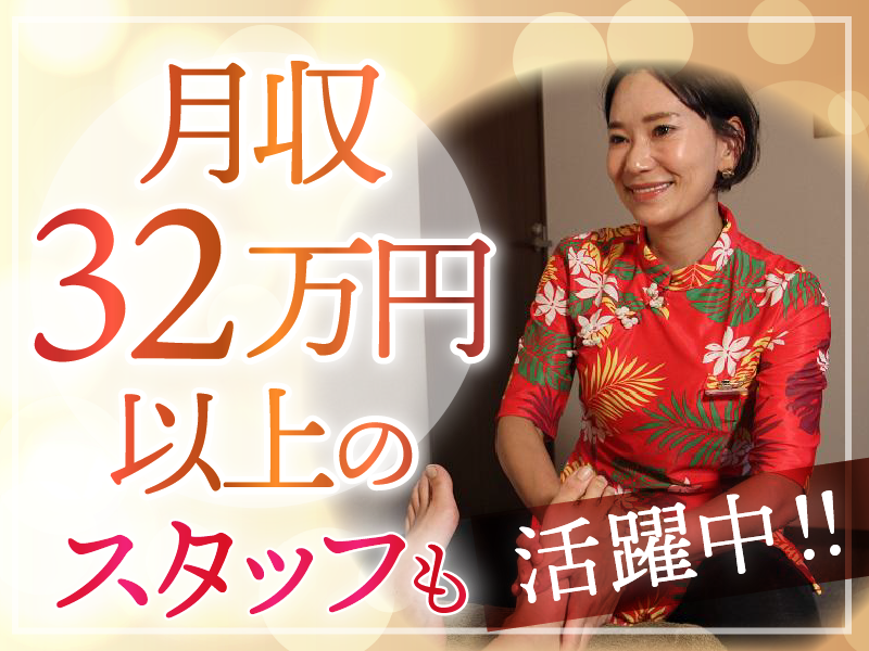 求めている人材 \本格台湾式リラクゼーション!/ 「未経験から手に職をつけたい」 「経験を活かして即戦力になりたい」 …未経験の方も経験者の方も大歓迎です✨ ◇リラクゼーションセラピスト経験不問 ◇経験者優遇 ◇主婦(夫)・フリーター活躍中 ◇学歴不問OK・ブランクOK …*……*……*……*……*……*… < こんな方もみんな大歓迎 > ◆家事や育児と両⽴して働きたい! ◆安定した環境で働きたい! ◆しっかり稼ぎたいフリーターさん! ◆掛け持ち‧Wワークをお探しの⽅ …など。 …*……*……*……*……*……*… \\ 経験も活かせる環境です // 「ヘッドマッサージ等の経験活かしたい」 「足裏マッサージ等の経験を活かしつつ、 もっとスキルや技術を磨きたい」 「ブランク復帰したい」なども大歓迎♪ ――――――――――――――――――― \\ 先輩スタッフの声 // たくさんの「体と心の変化」を 実感しています! ●以前は事務職でしたが、 今は毎日無理なく体を動かし、 自然と汗をかくように! そのおかげで、以前より風邪を ひきにくくなったと感じています。 ●働いている間に、体幹が 鍛えられてきたような実感もあります! 日々の生活の中でも、 以前よりテキパキ動けるようになり、 筋力もついた気がします! ●毎日温泉に無料で入れるため、 光熱費がかなり抑えられ、 お肌トラブルもなくなりました! ●お客様と会話をしながら接客を行うことで、 気分転換にもなり、以前よりストレスを 溜めにくくなりました! ●ずっと座りっぱなし、または ほとんど動かない仕事を していた頃よりも、 今はぐっすり眠れるようになり、 ご飯もより美味しく感じます! ―――――――――――――――――――
