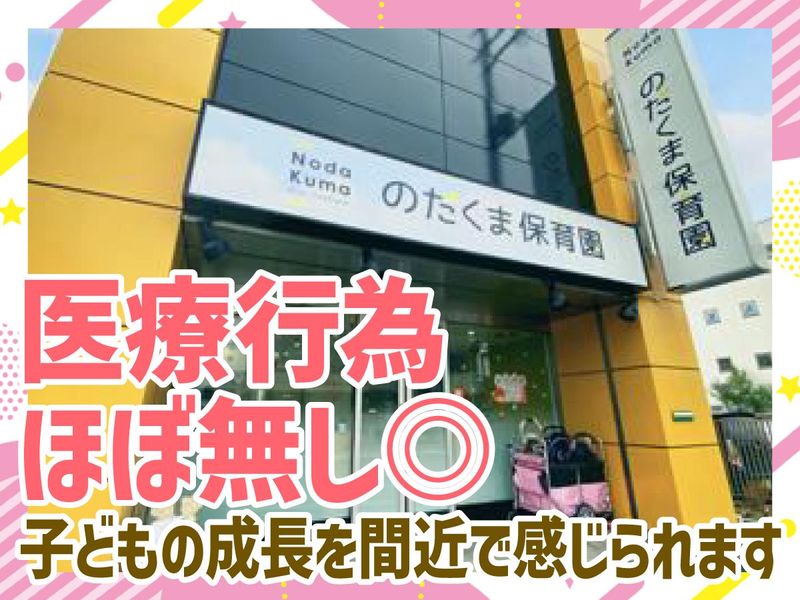 仕事内容 保育士のサポート業務を中心に、 子どもたちの健康管理などをお任せします。 子どもの成長を間近で感じられるお仕事です♪ 【具体的には…】 ・月1回の「保健だより」作成 ・身体測定 ・体調不良時の看病 など。 ブランクがある方も安心です◎ シフトの融通が利くので、 家庭との両立もしやすい環境! 人員配置にもゆとりがあるため、 子ども一人ひとりにしっかり寄り添うことができます。 ハイハイだったのが歩けるようになったり、 スプーンを上手に使えるようになったり、 泣いている子を元気づけてあげていたり。 そんな子ども一人ひとりの「できた!」を 一緒に喜べるのがこの仕事の魅力です♪ ▼ホームページはこちらから http://nodakumakids.com
