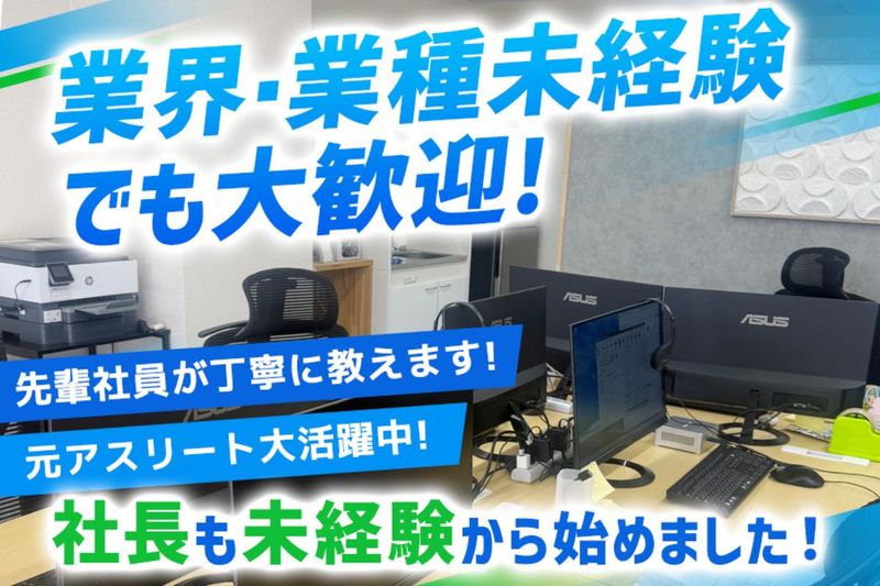 求めている人材 \業界・業種未経験の方大歓迎!!/ ⭐ヤル気と人柄重視の採用です!⭐ ✅今よりもっと稼ぎたい方! ✅失敗を恐れず、まず行動できる方! ✅年功序列ではなく、成果で評価されたい方! ✅同年代より早く成長したい、収入を上げたい方! ✅「営業=キツい」より「営業=稼げる」に魅力を感じる方! 経験よりも、挑戦する気持ちと 「自分の力で収入を上げたい」という意欲を重視します! 現在活躍している方の前職は、 エステ・飲食・工場・派遣と 全員営業未経験の20~30代の方々です! ~入社後の例~ 入社 1 ヶ月:同行営業 3 ヶ月:独り立ち+個人目標設定 半年:後輩指導やリーダー役も経験可能 上記はあくまでも一例ですので あなたの成長意欲やスピード感に沿って 取り組むことが可能です!
