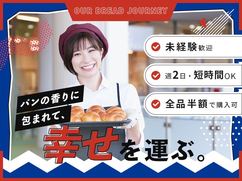 アピールポイント 【✿1】両立&働きやすい環境! 自由シフト制で週2日&短時間から 働くことができるので、学業や ご家庭、プライベートとの両立を しやすい環境です〇 【✿2】嬉しい社割あり! パン好きにはたまらない”社割”を ご用意しています! ぜひ色々な種類のパンを食べて、 お客様にもオススメしてみてくださいね♪